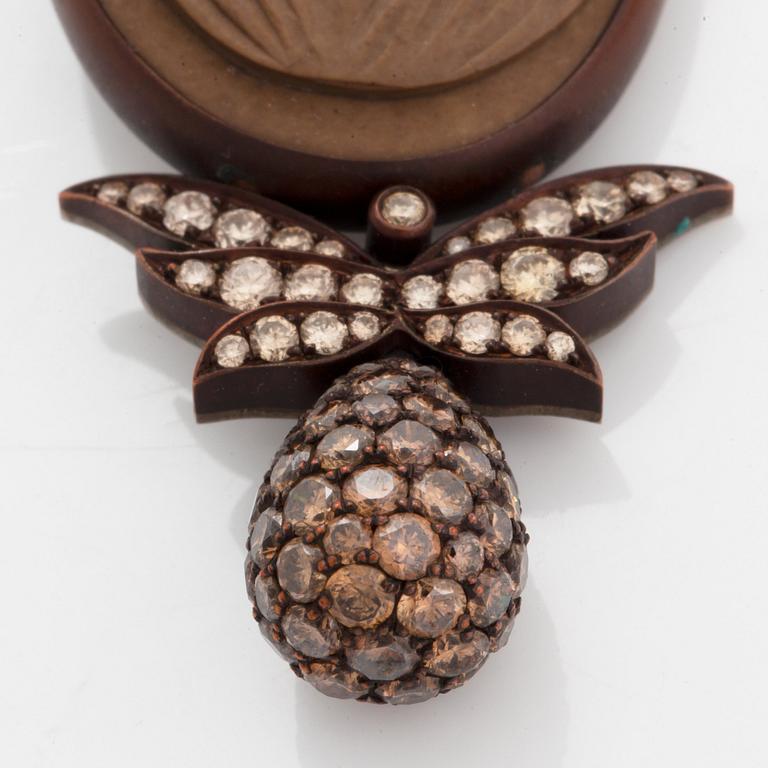 set with round brilliant-cut diamonds of brown tint with a total weight of ca 9.25 cts, 18K gold and copper, dimensions 24 X 80 mm, total weight 38 g. Signed Hemmerle and with Maker´s mark.