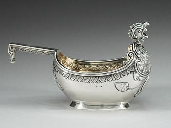 The maker has also worked for Sasikov. Engraved monogram and dated 1908. Length 19 cm, weight 385,5 g.