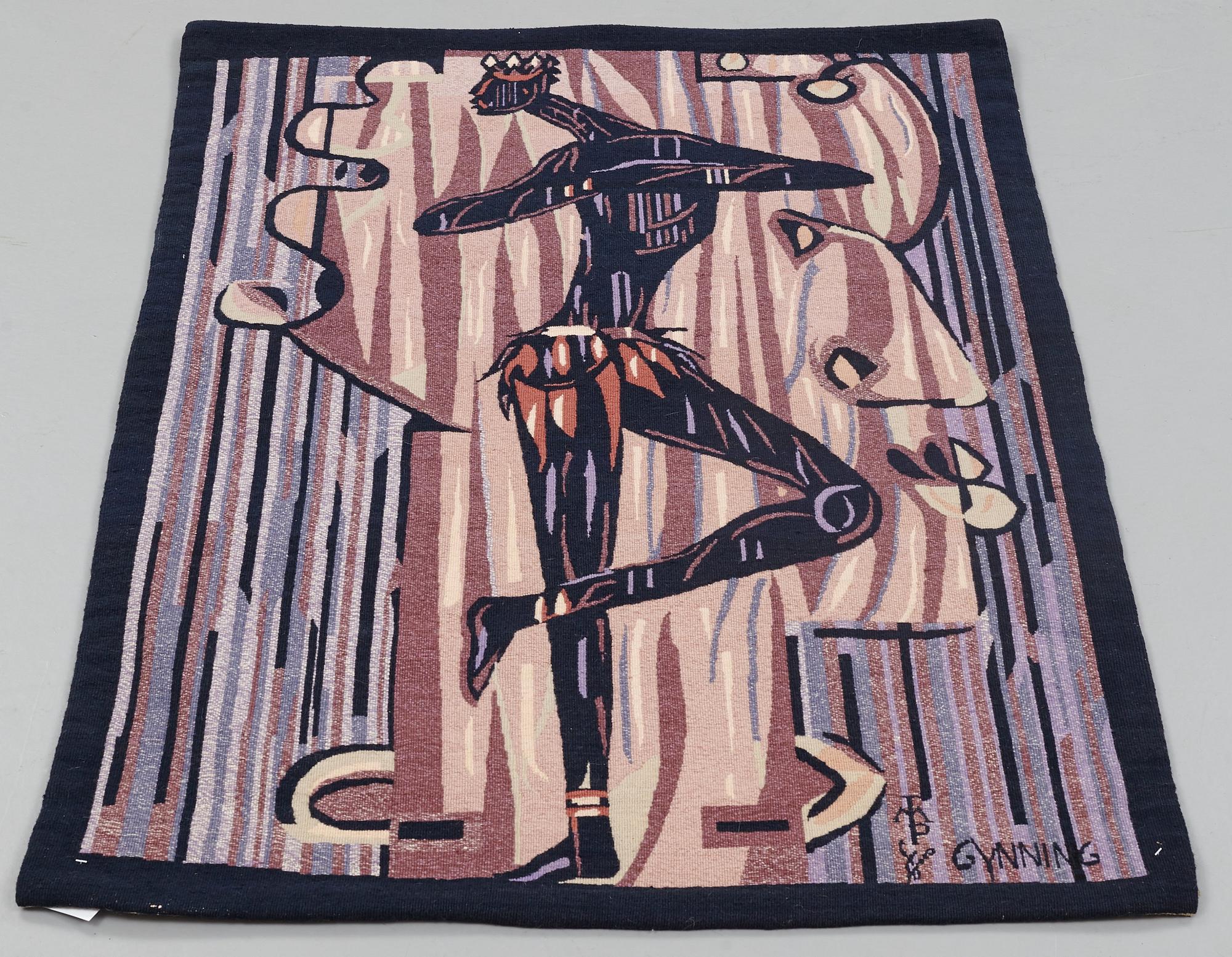 (Lars Gynning, Manufactura de Tapeçarias de Portalegre/Portugal). A polychrome modernistic composition with a dancer. Sewn at the back woven 986.