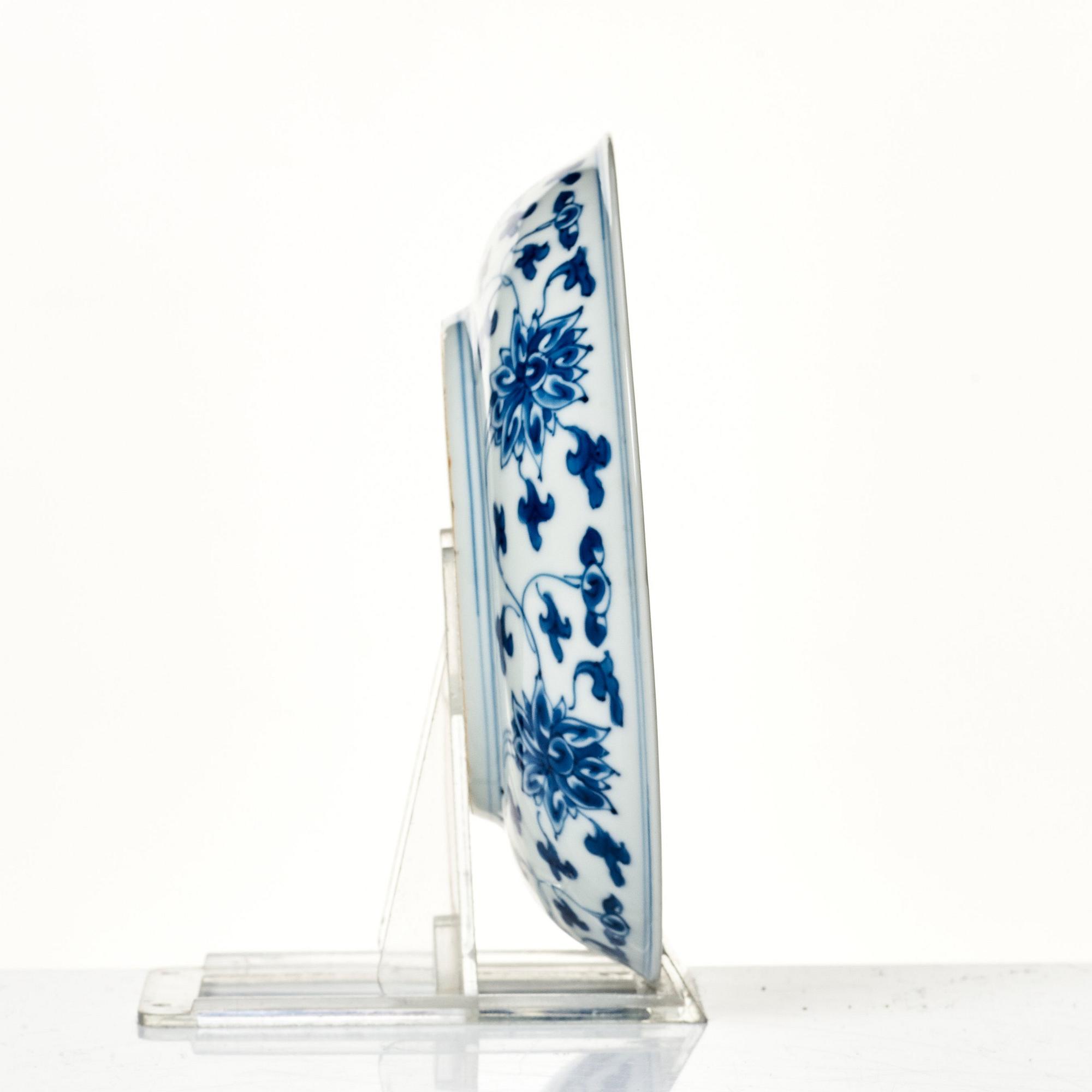 Decorated with a continous lotus scroll. Diameter 15,3 cm.