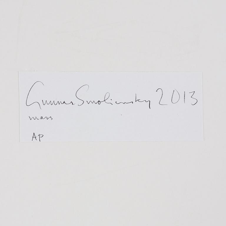 Signed Gunnar Smoliansky and numbered AP verso. Gelatin silver print, image 27.2 x 27.2 cm. Sheet 40.3 x 30.3 cm.