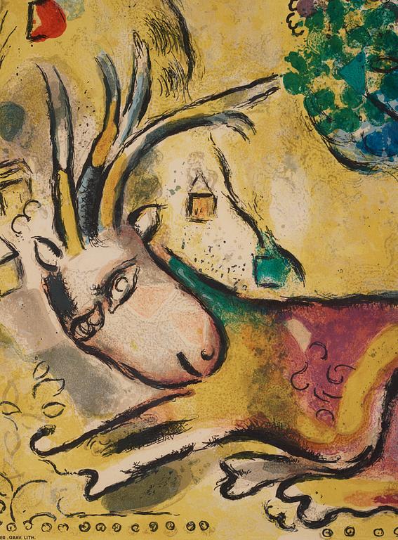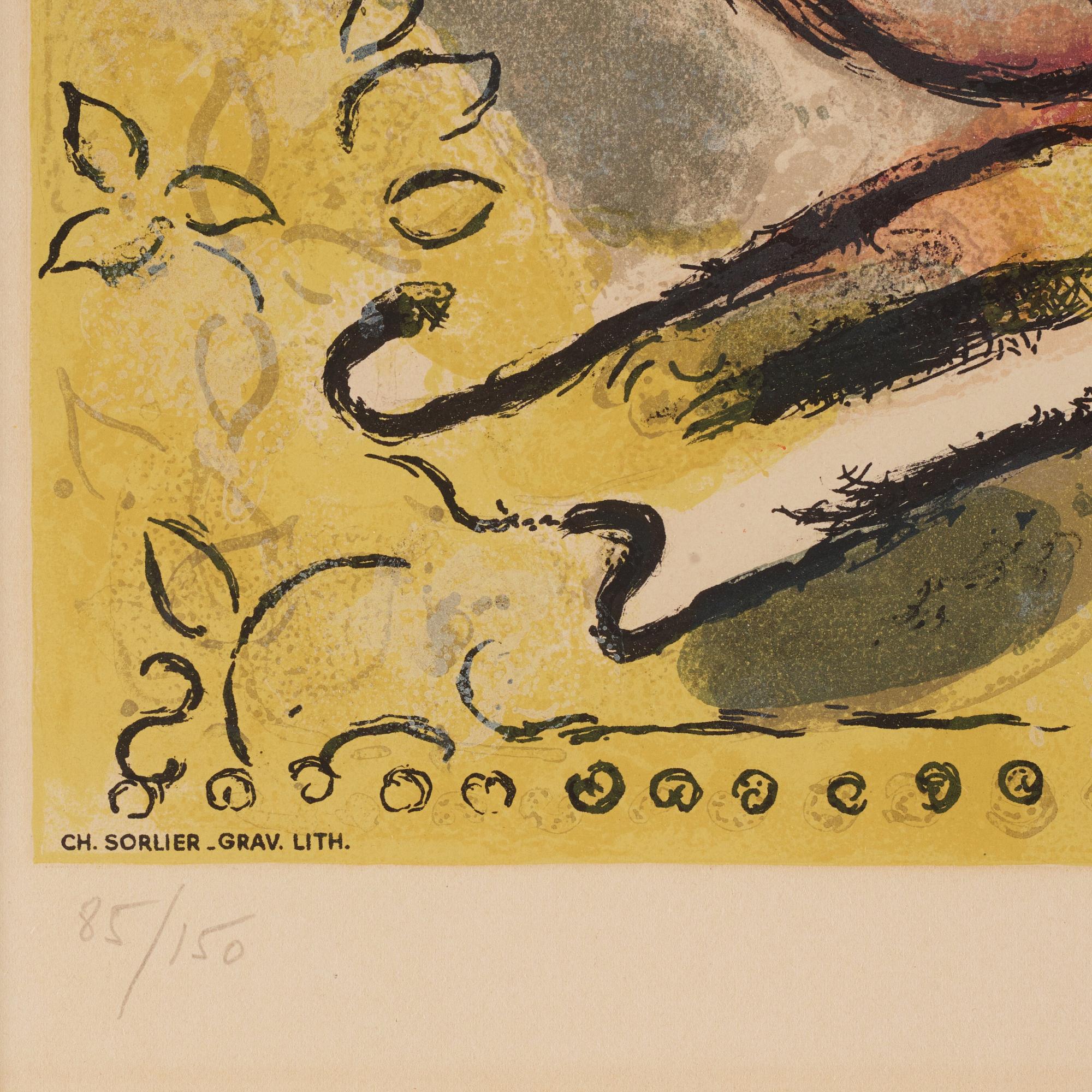 Lithograph in colour, 1964, by Charles Sorlier after Marc Chagall, signed in pencil and numbered 85/150, published by Mourlot, Paris. I. 61,5 x 46 cm.