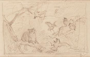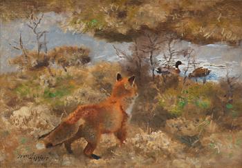 695. Bruno Liljefors, Hunter and fox by the fence.