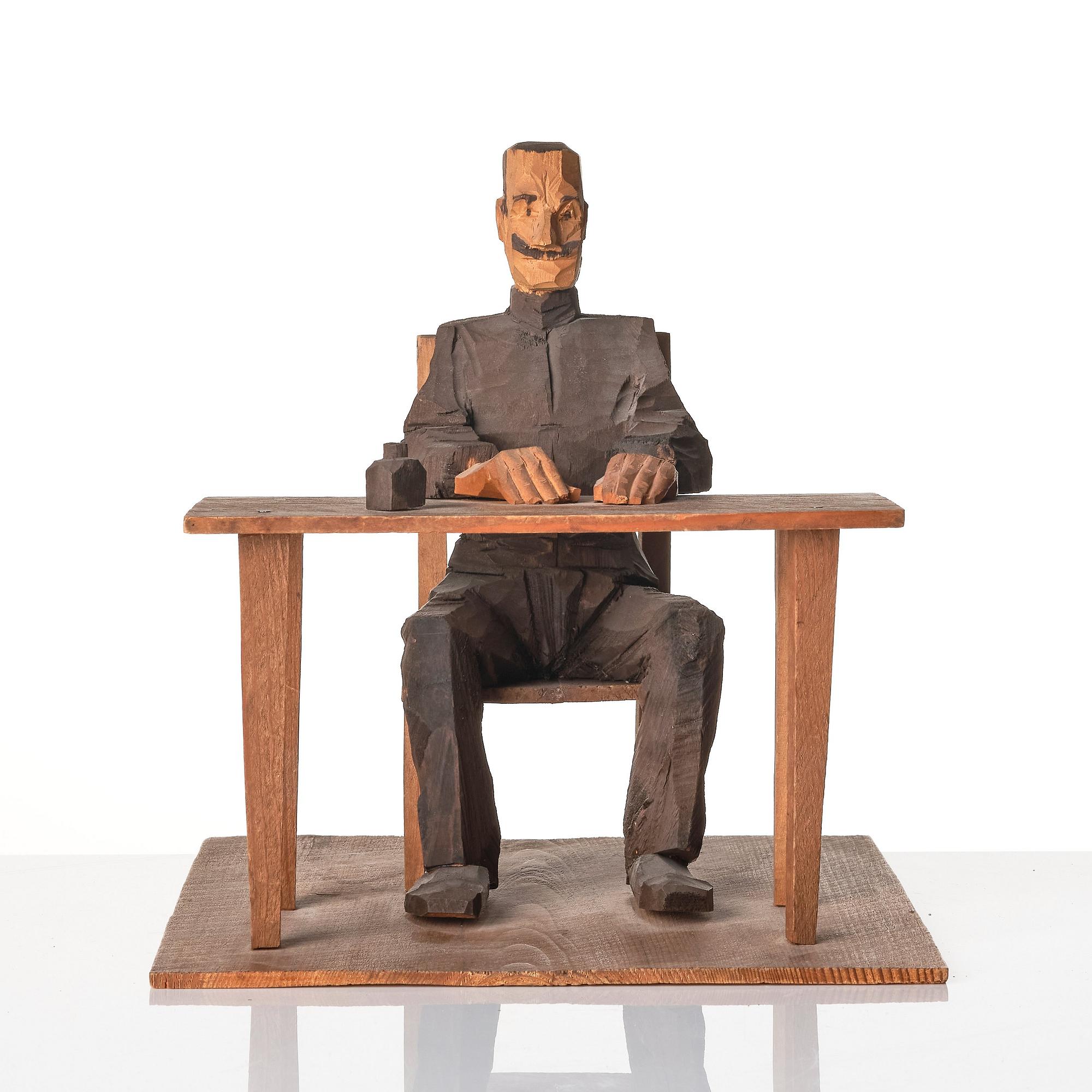 Axel Petersson Döderhultarn is one of this countrys best wooden sculptures artists, famous far beyond the borders of Sweden. In a masterly and humorous way he portrayed life in a small town in Småland around the turn of the century. Döderhultarn was a self-taught carver and is today one of Sweden's most famous sculptors. He was born in 1868 in Döderhult parish and it was after the parish, he was named Döderhultarn. All his adult life he was living and working in Oskarshamn. Döderhultarn had his big breakthrough at the age of 40 years old in 1909 and orders began to flow in. His sculptures were bought by private individuals, art collectors and museums, and he participated in many exhibitions, both in Sweden and abroad, including Paris, Copenhagen, Brighton, Rome and New York.