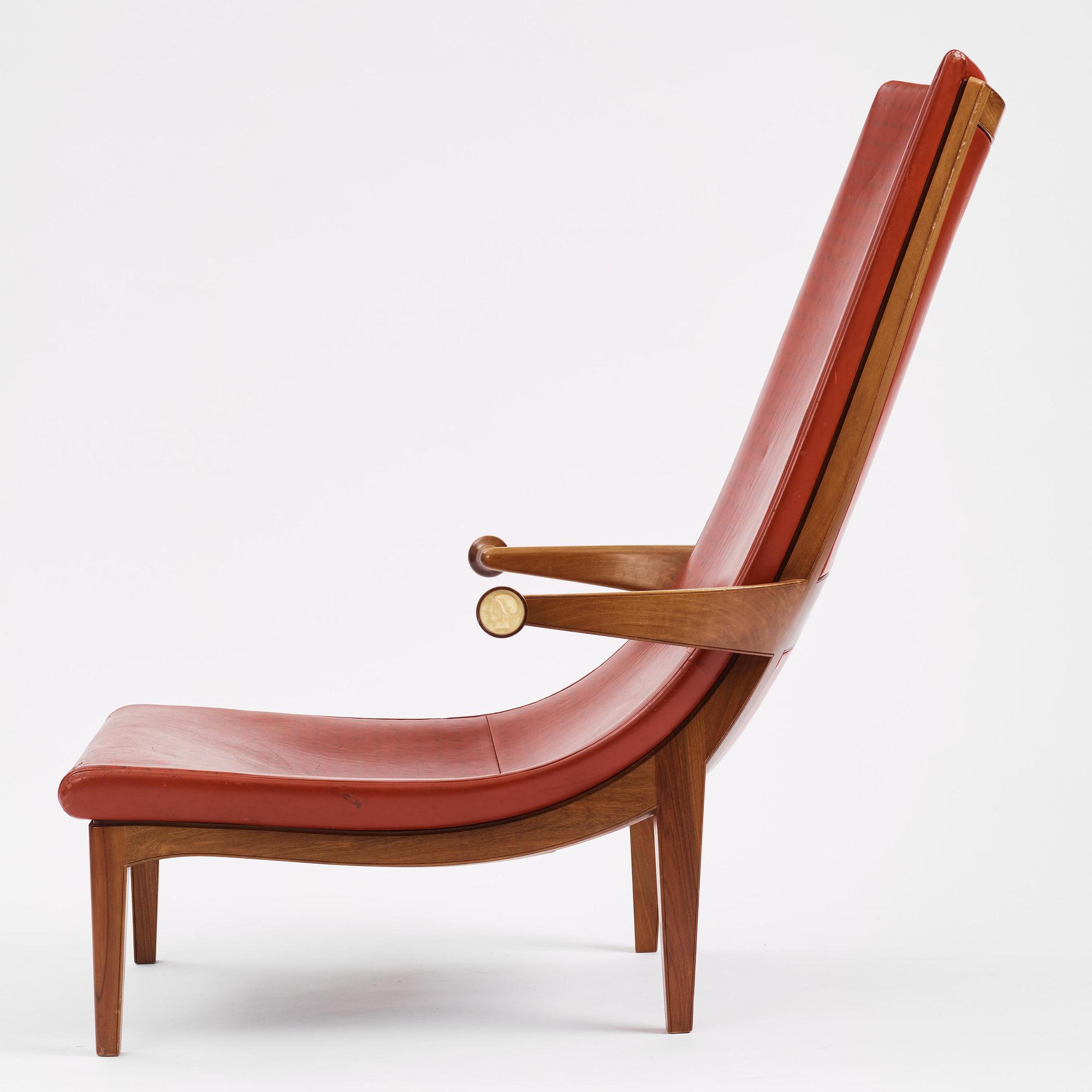 Designed for the Swedish pavilion at the Paris Exhibition in 1925. Cassina made a very limited edition in 1983. The present chair is according to family tradition the very first produced in this edition, and sent as a gift from Cassina to Hans Asplund, son of Gunnar Asplund. When Cassina premiered the new edition in Copenhagen, Hans was present. The chair then had a prominent place in Hans and his wife Anne Asplund's home at Grönegatan 32 in Lund, and when Hans passed away in 1994 it passed on to Bo Asplund.