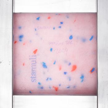 Frame in bent steel, seat in recycled plastic, stamp-signed Stamuli and signed and dated Bruzzone Green House Bar 2024. Length 35 cm, width 35 cm, height 67.5 cm.