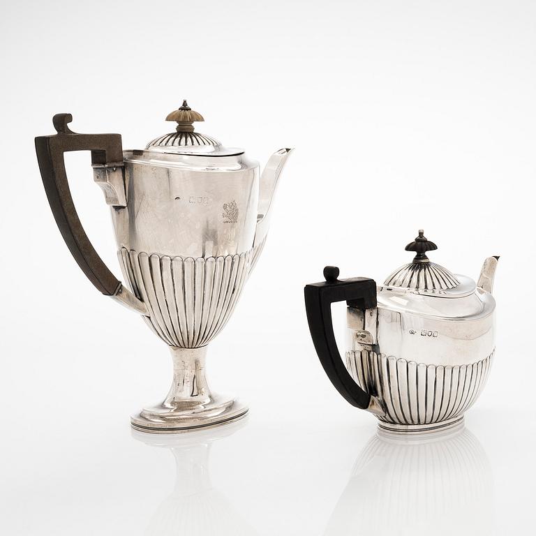 A four-piece sterling silver coffee and tea set, various makers marks, London 1888-1898.
