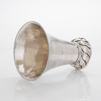 Internally gilded. Engraved decoration of lions and medallions with monograms under royal crown. Height 19 cm. Weight 313 grams.