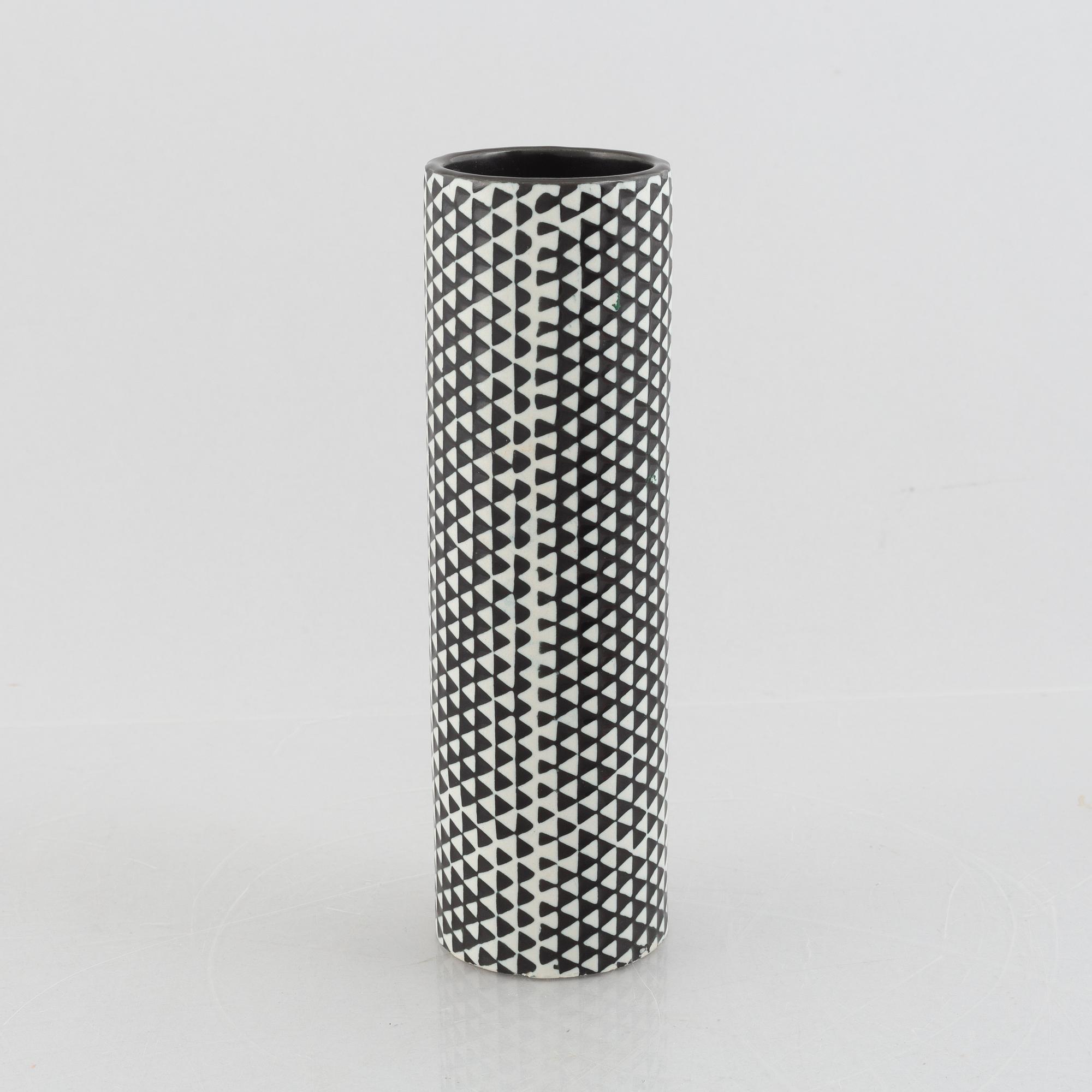 Cylinder-shaped with geometric decoration in black and white. Stamped Gustavsberg Domino Stig L. Diameter 6.5, height 23 cm.