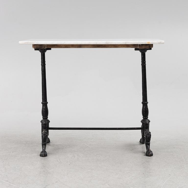 Base in cast iron, top in marble. 90 x 60, height 71 cm.