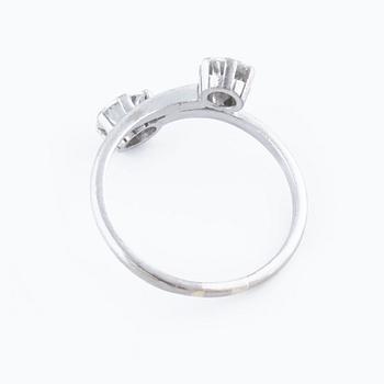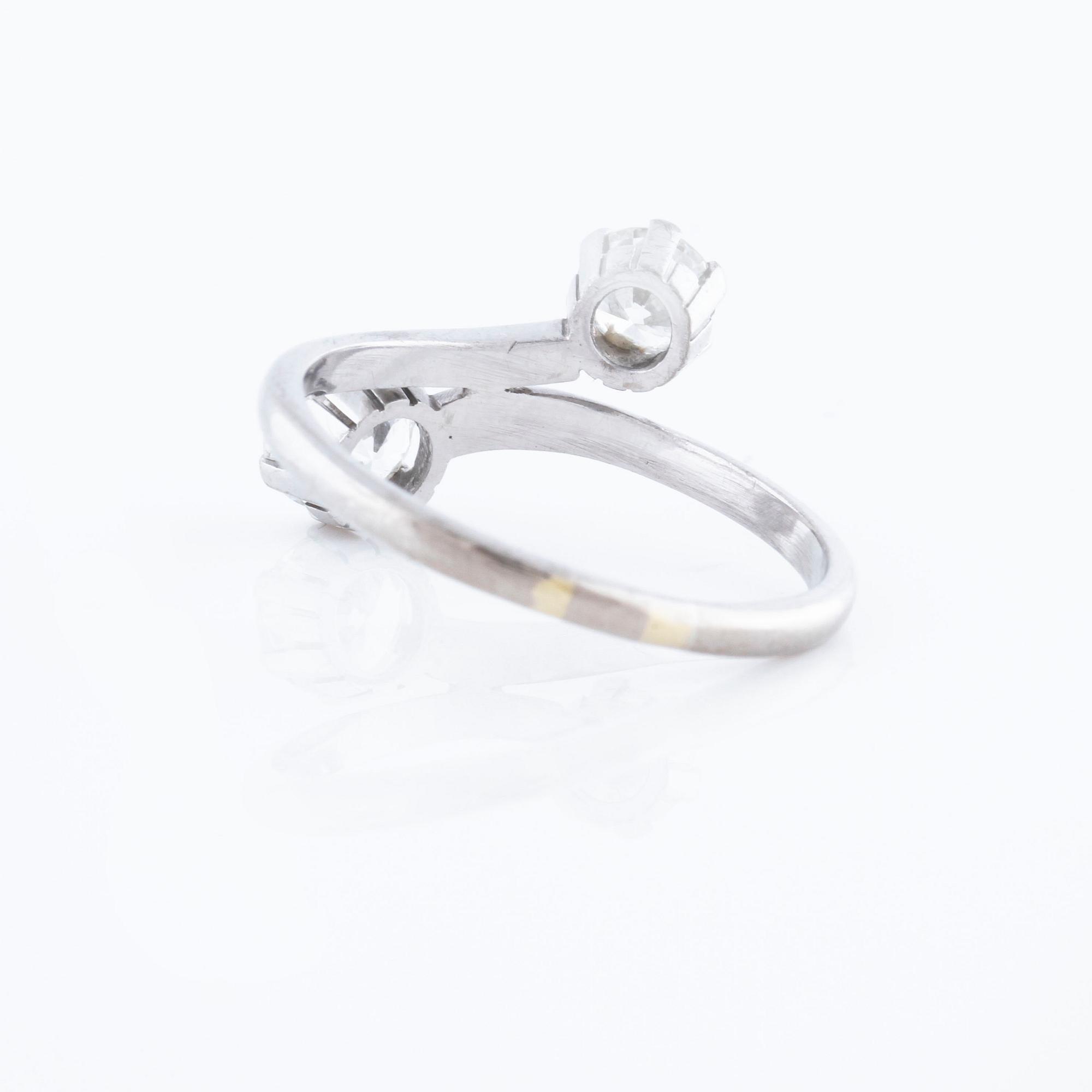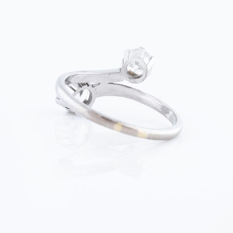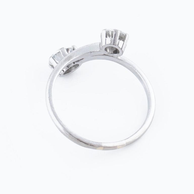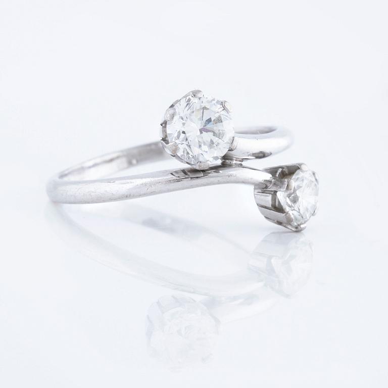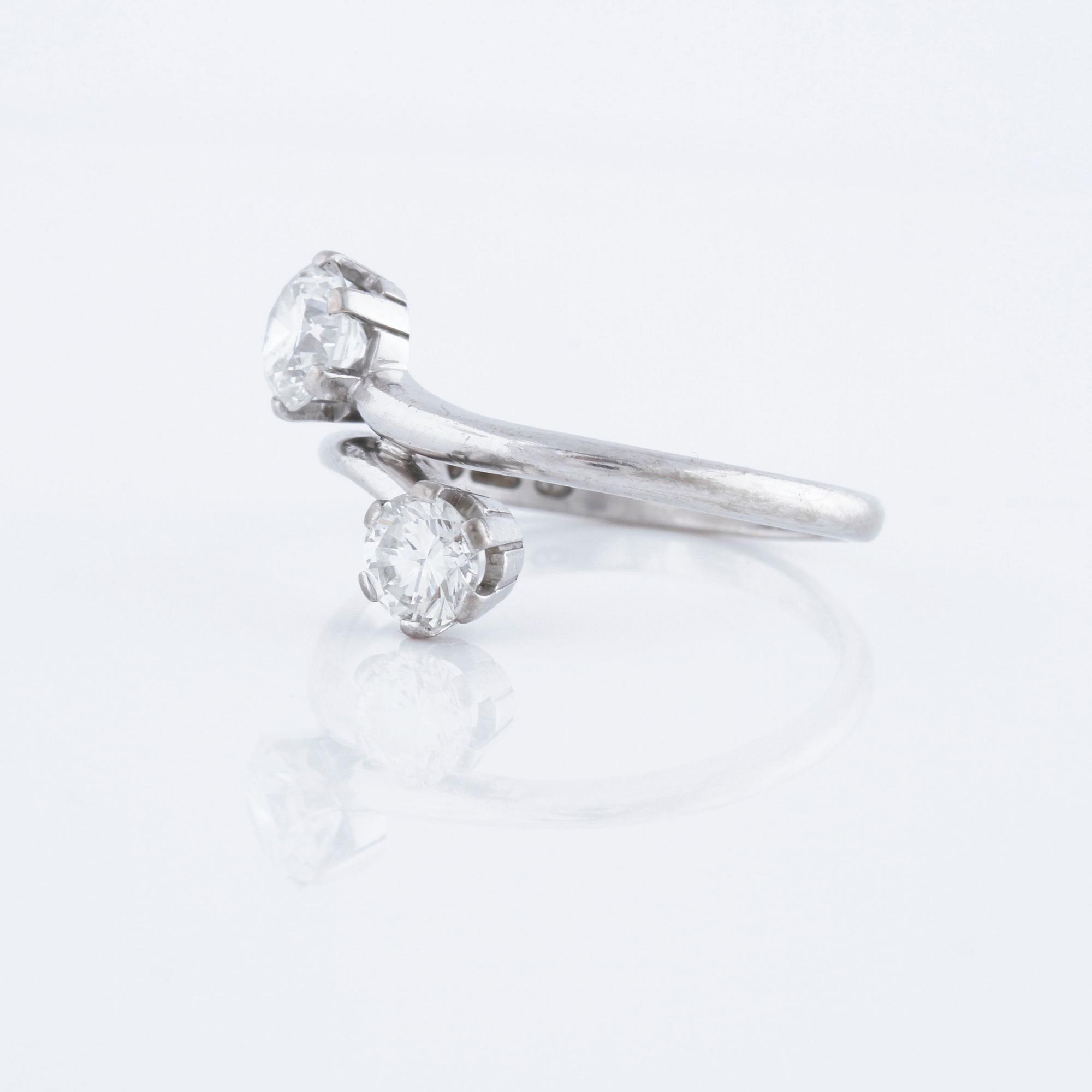 18K white gold. 0.77 cts diamond with carat and quality G/VS2 according to certifiacte from Westerback, Helsinki, 1982. 0.50 cts diamond with quality ca H/VS. Ring with size 18,25/58. Weight 3,7 gram.