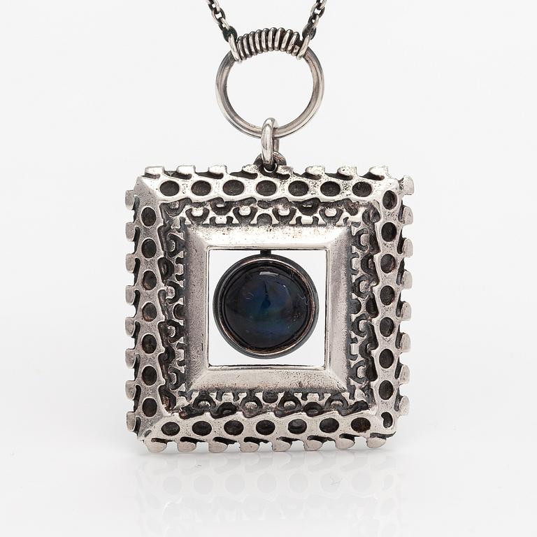 Pentti Sarpaneva, A silver necklace with a spectrolite, model 1413. Kalevala Koru, Helsinki 1968.