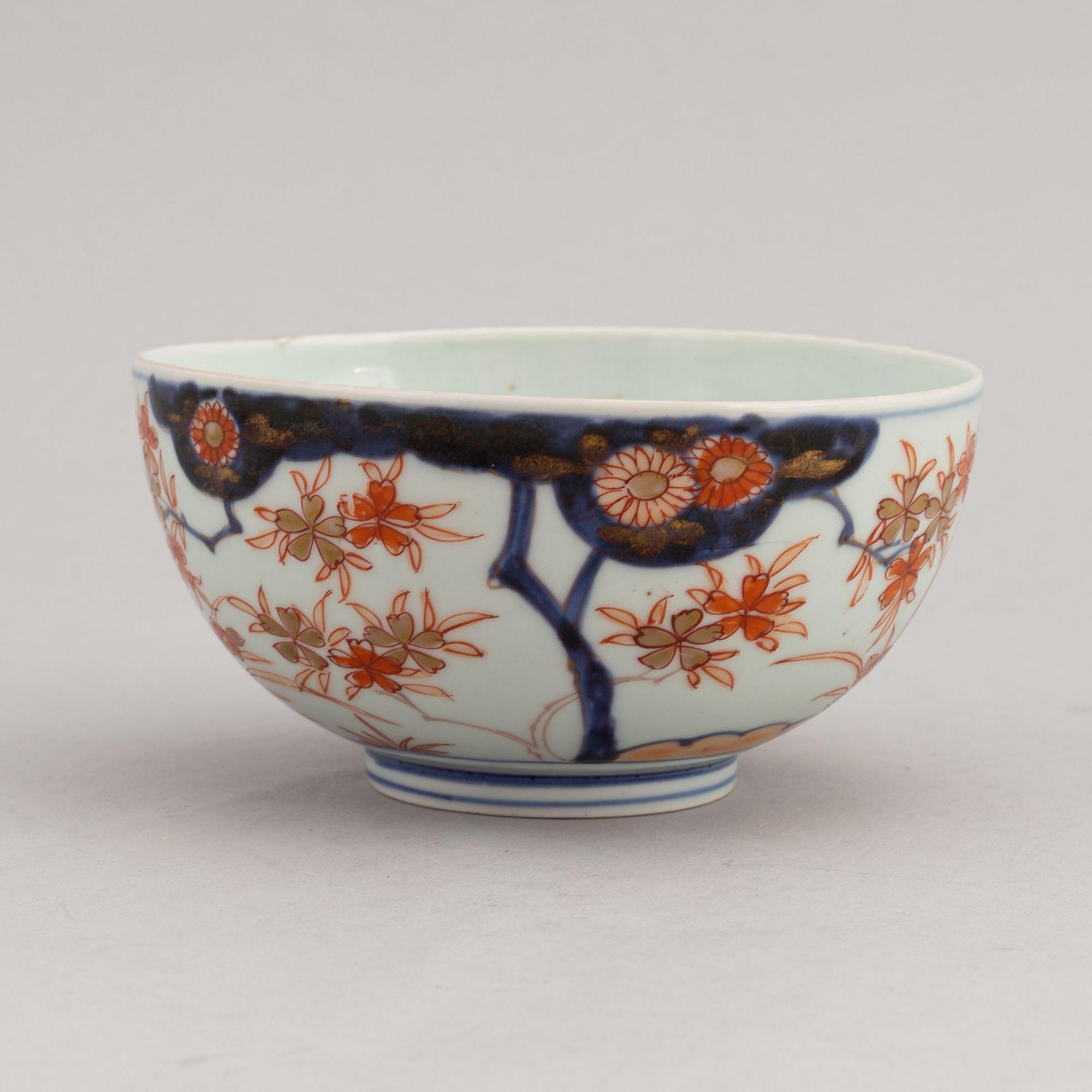 The vase wtih pierced decoration in imari. Height 23 cm. The bowl in imari, diameter 15 cm.