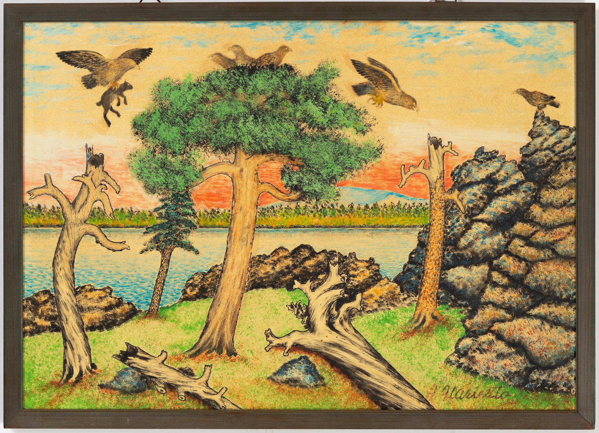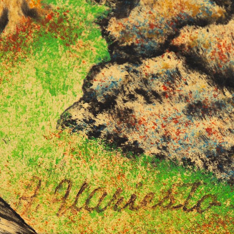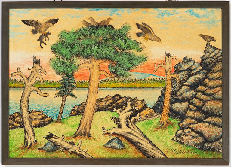 Andreas Alariesto, mixed media on paper on panel, signed.