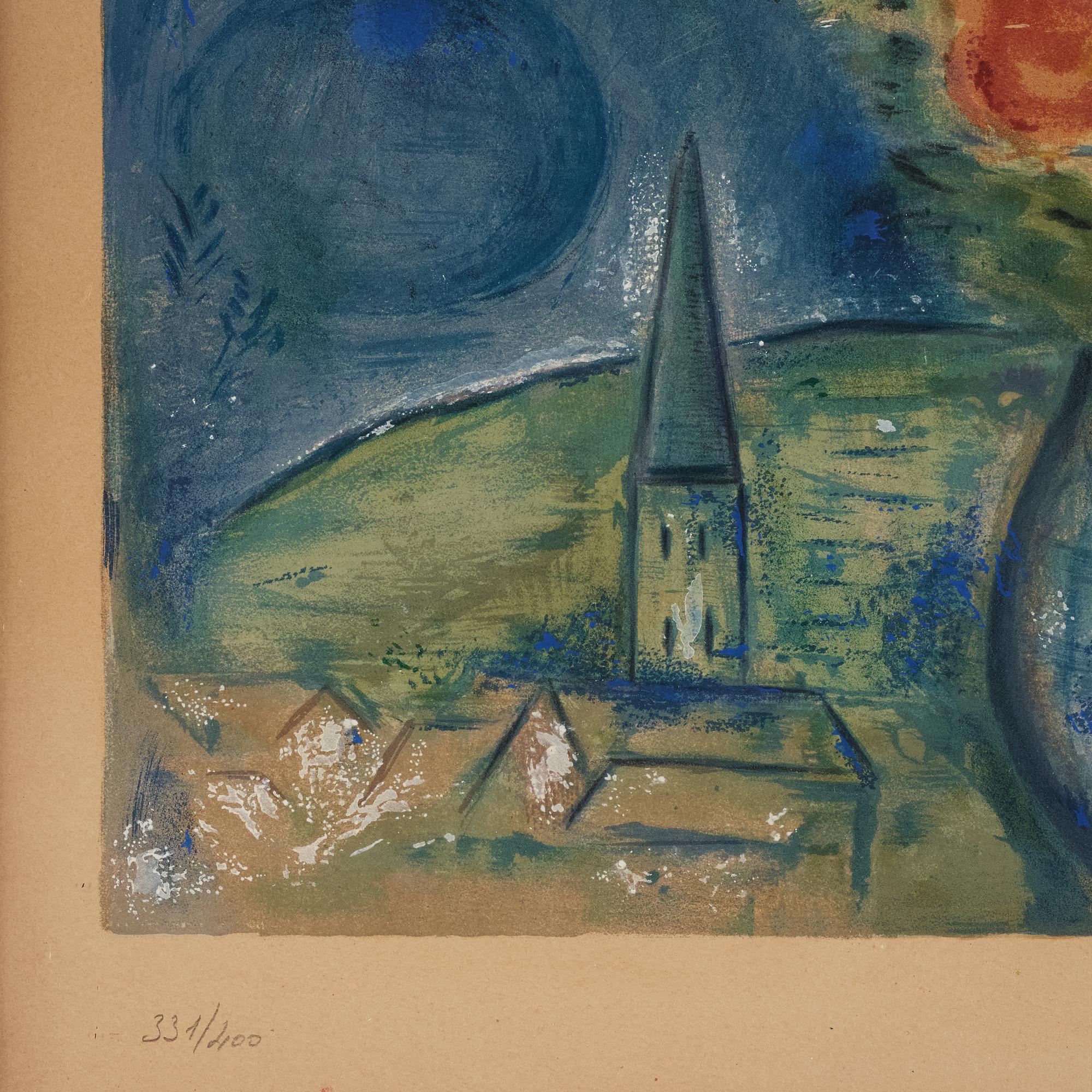 Lithograph in colours, 1949, on Arches paper, by Charles Sorlier after Marc Chagall, signed in pencil and numbered 331/400, published by Galerie Maeght, Paris. I. 55.5 x 40,8 cm S. 64,5 x 47,5 cm (Arches).