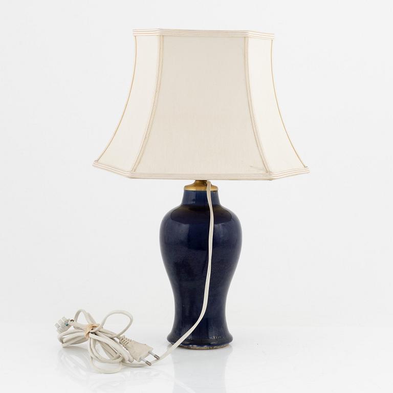 With faint traced of a gilded décor. Height of the vase 23 cm Height of the lamp with lampshade 45 cm.