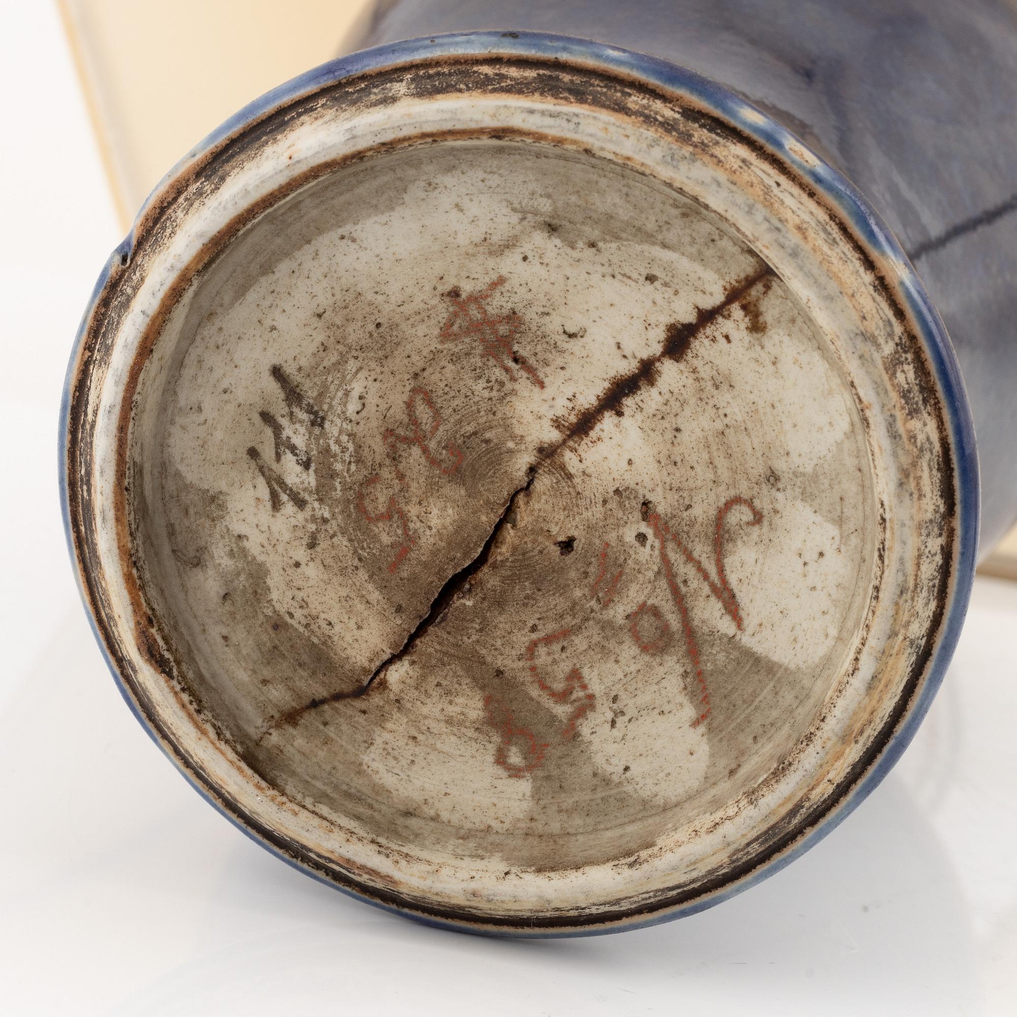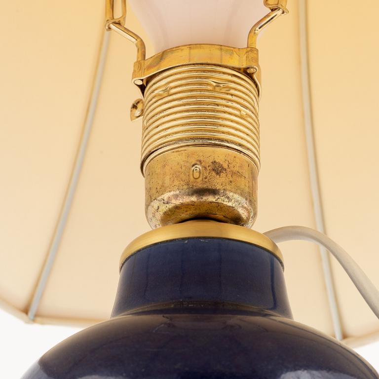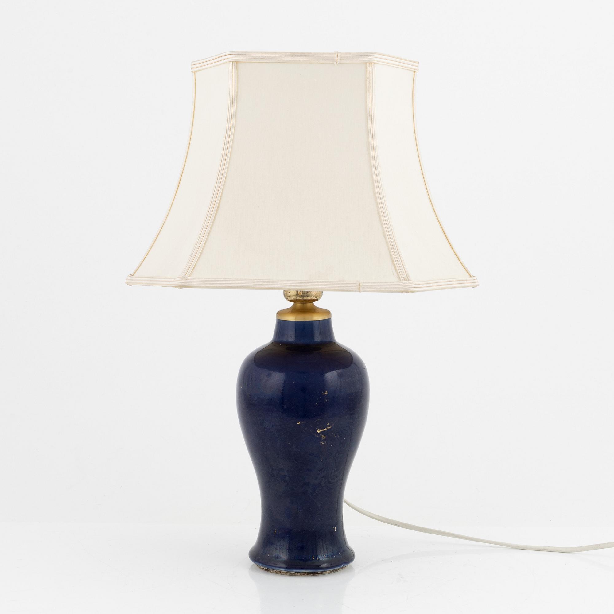 Electrical function not tested. The brass mounting for the lamp stuck to vase. Chip under the mounting. Wear. Firing crack to the bottom.