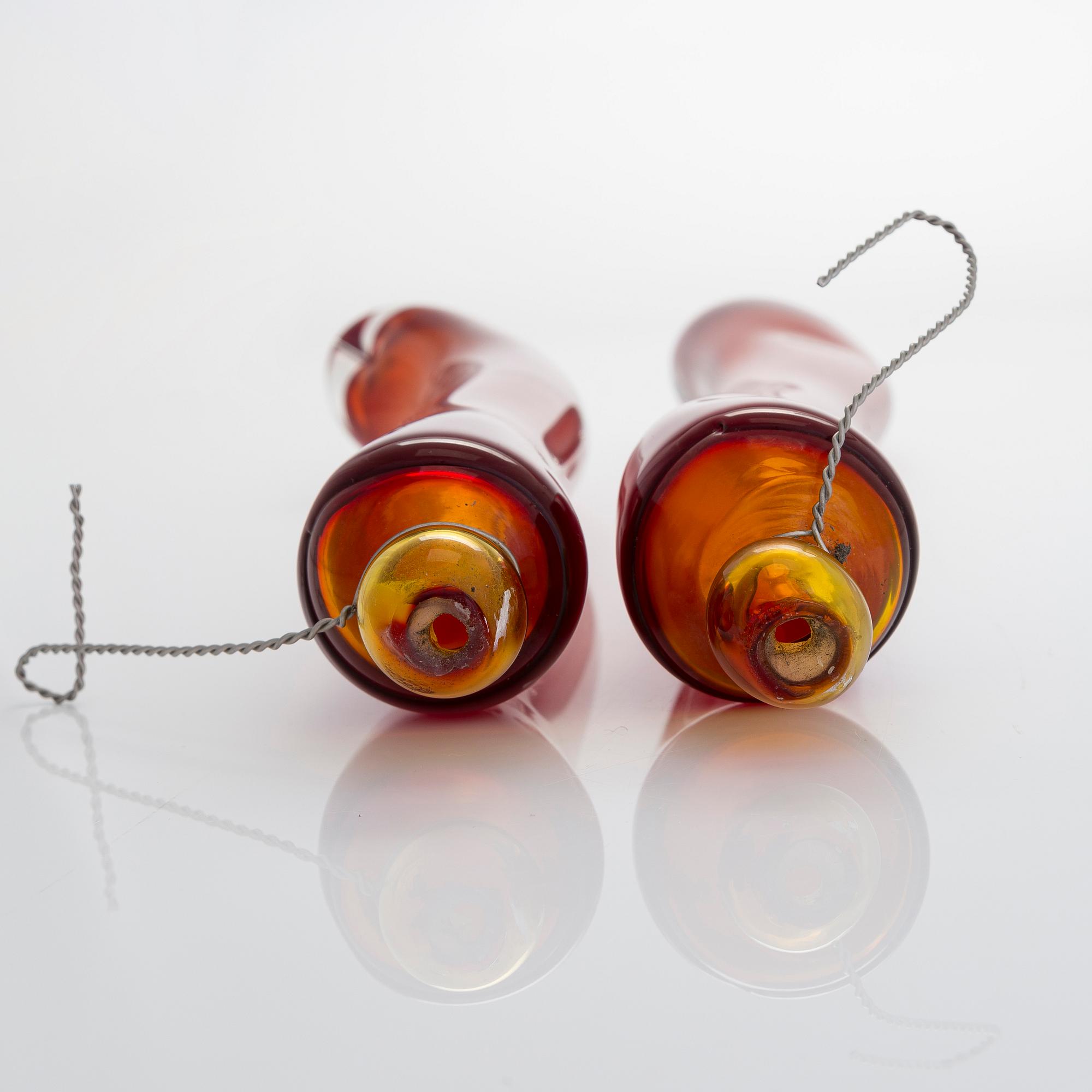 Red/yellow and clear glass. Suspension wires in twisted metal. Length 31 - 35 - 38 - 40 cm.