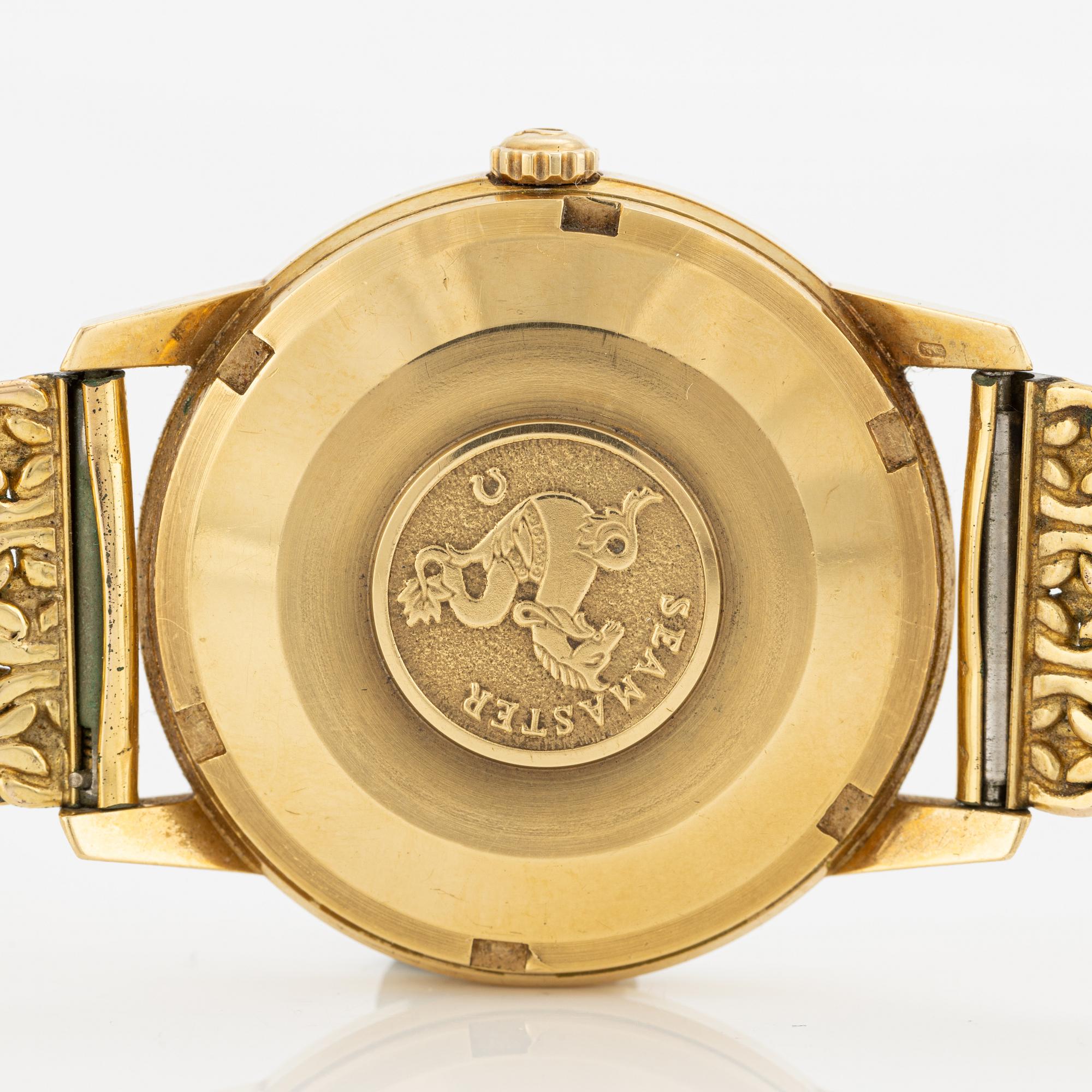 18K gold, automatic, plastic crystal, metal bracelet, circa 1966.