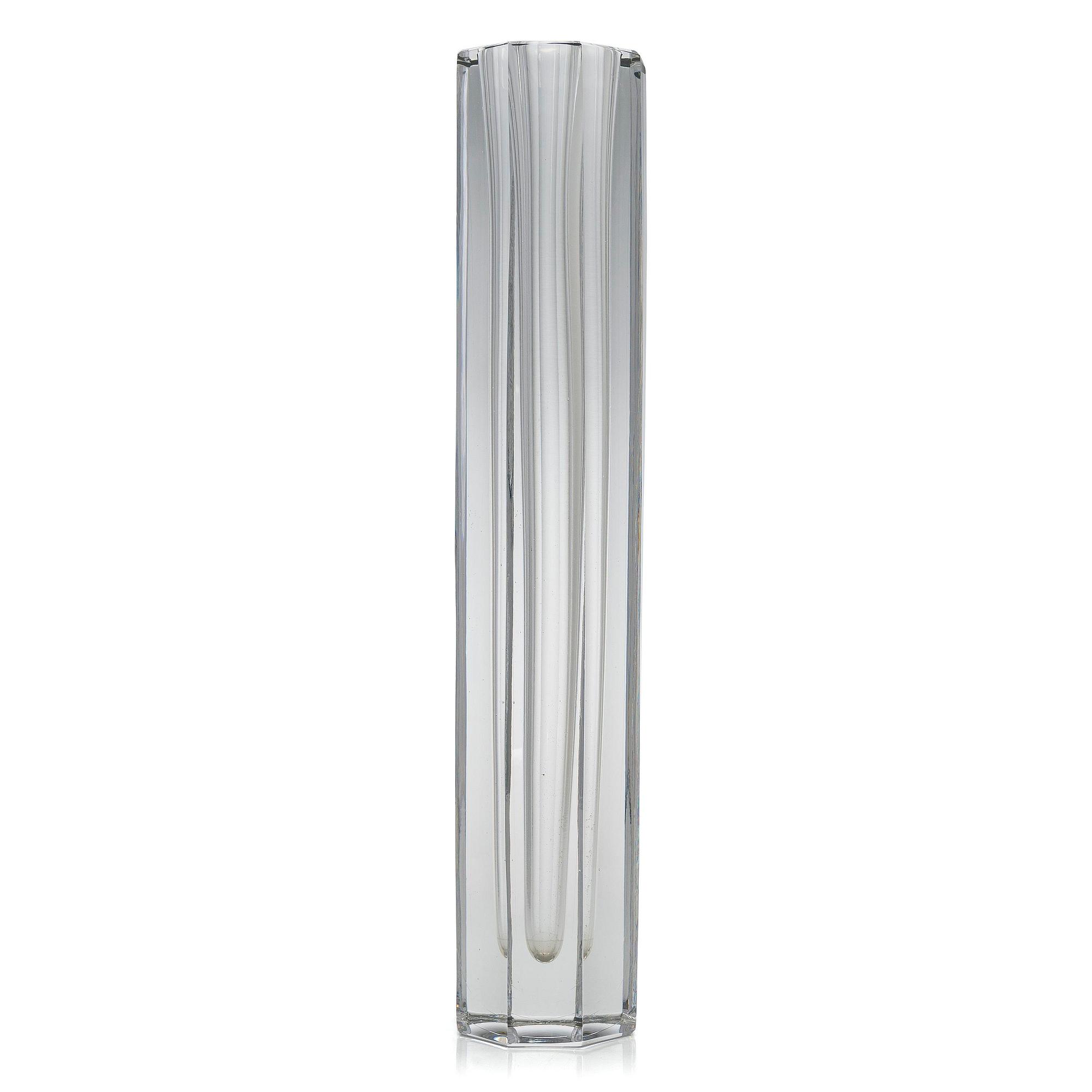 Turned free blown, crystal faceted. Height 46 cm. Diameter 9 cm.