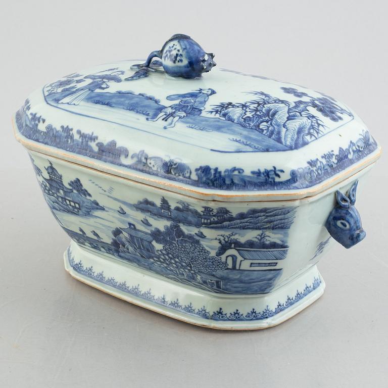A blue and white porcelain tureen with cover, China, Qianlong (1736-95).