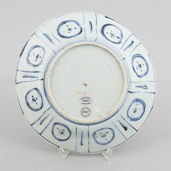Decorated with underglaze blue featuring a garden in bloom. Diameter c. 21 cm.