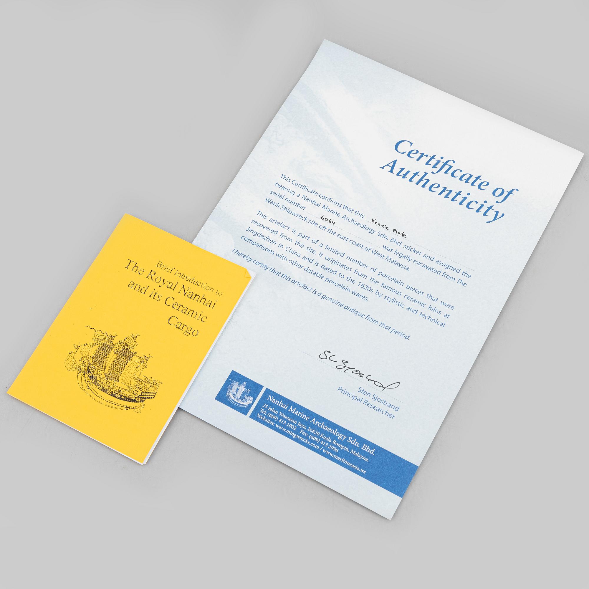 Nanhai Marine Archaeology, label no 6064.Certificate from Hua Hong Antique House Sdn Bhd comes with the lot.