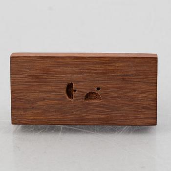 Brass, Height 5.5 cm. Mounted on a wooden base.
