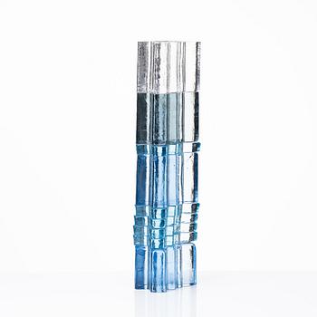Joined pieces in different blue tinted colors and clear glass, signed E Öhrström, height 51.2 cm.