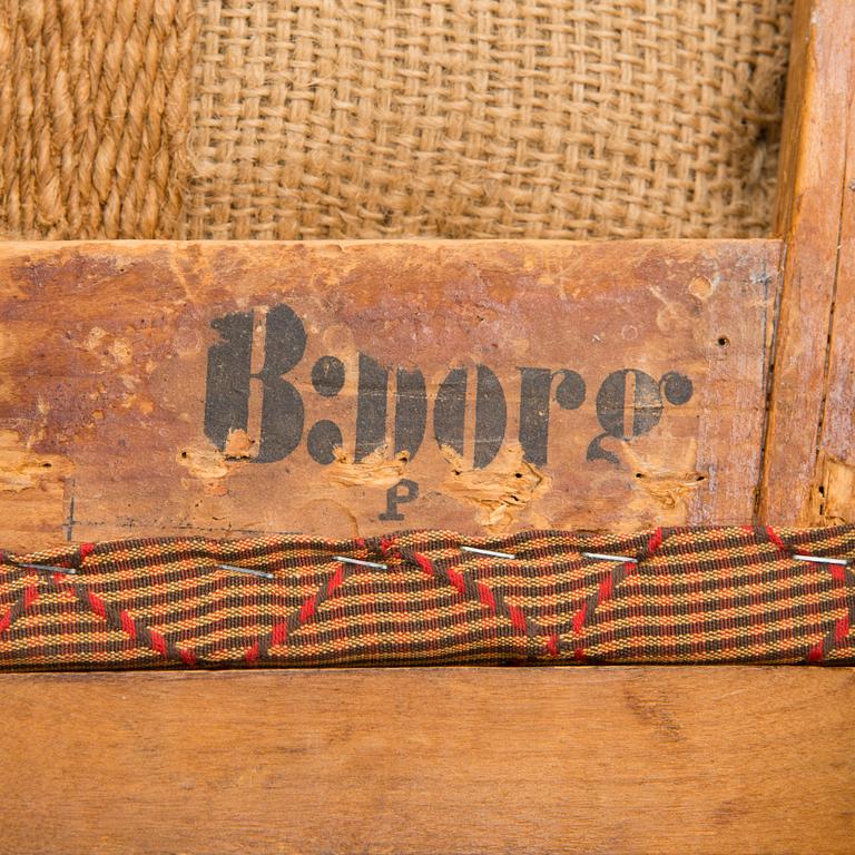 Renovated. Later upholstery. Repairs. Wear due to age and use.