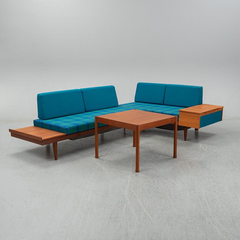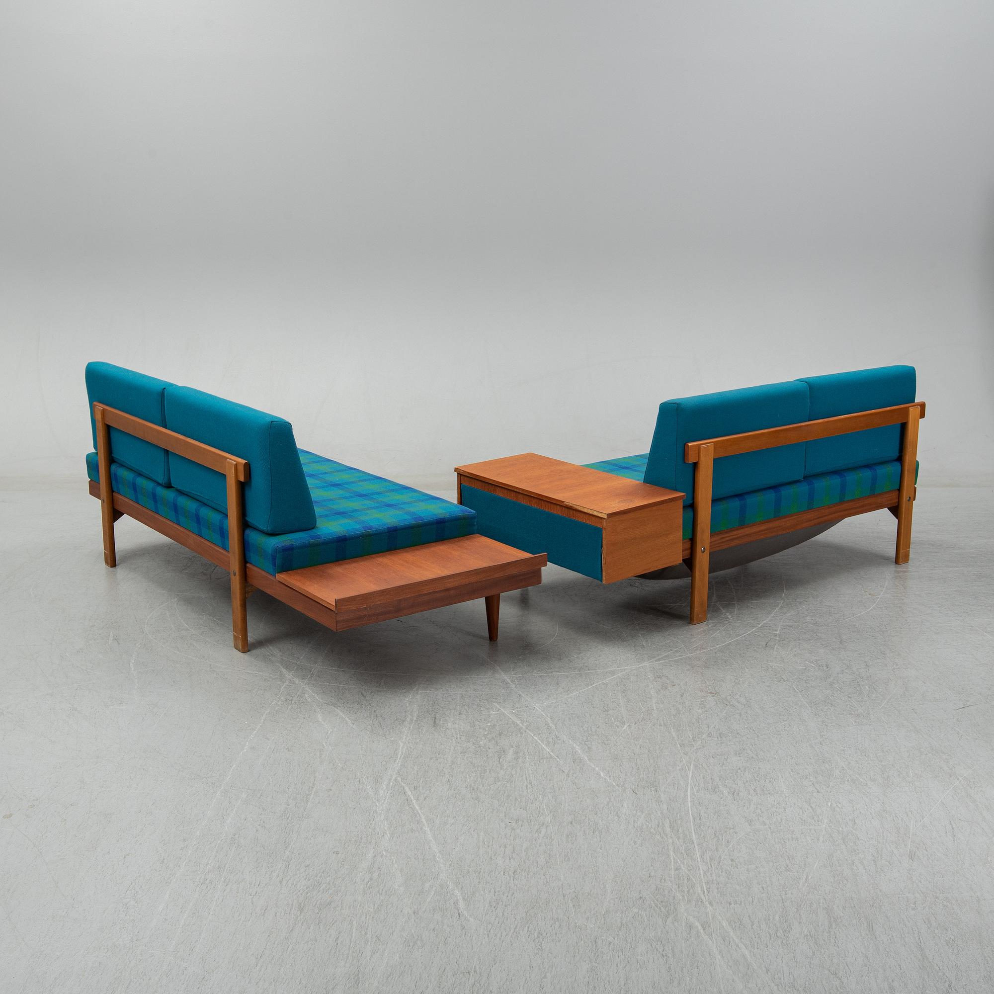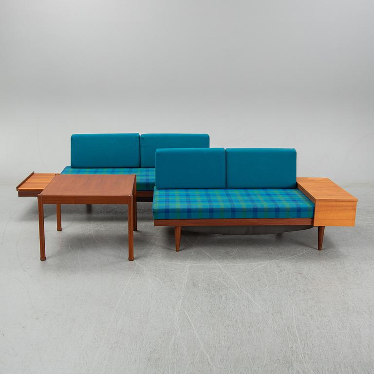 Table 70 x 70 cm, height 53 cm. Sofas length 163-193 cm, seatheight ca 40 cm.