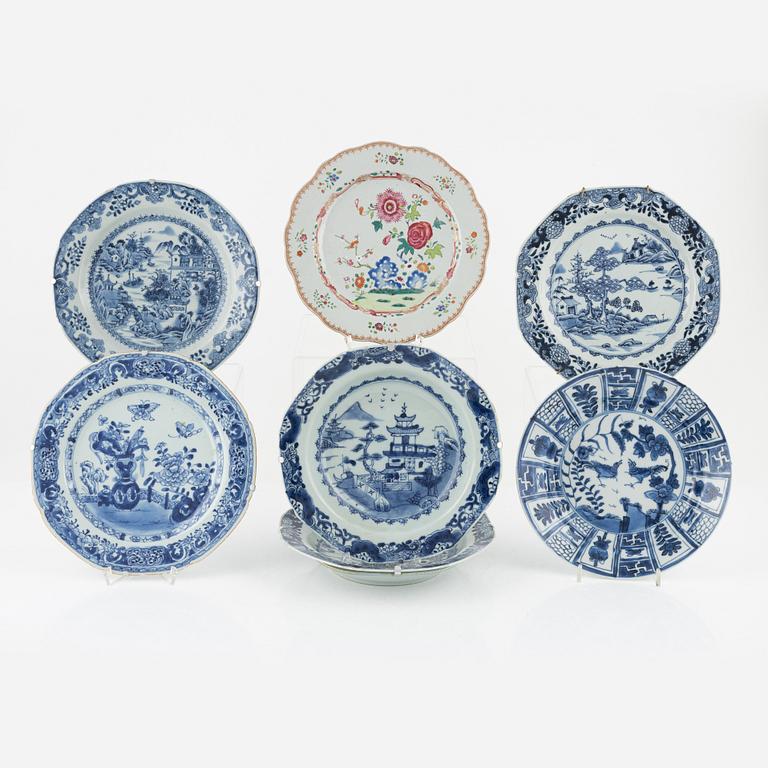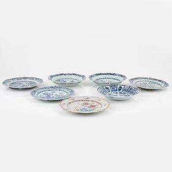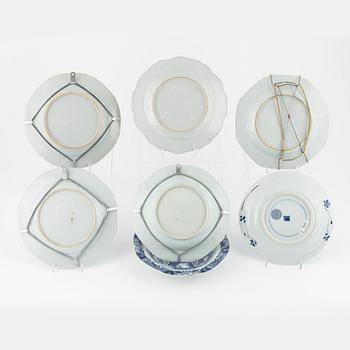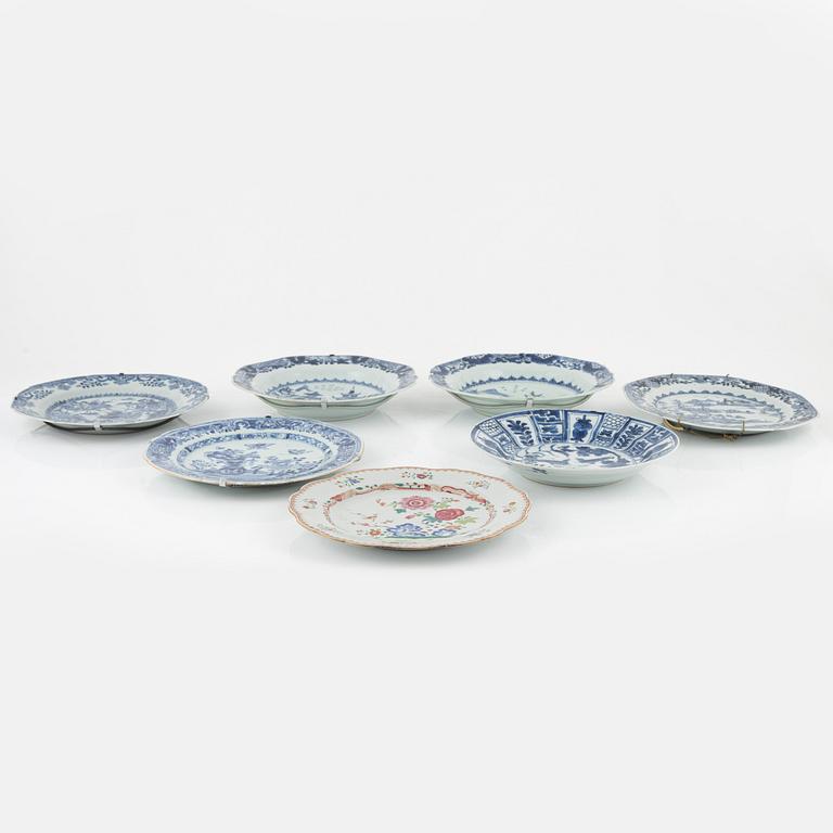 Seven porcelain plates, China, Qianglong and Kangxi, 18th century.