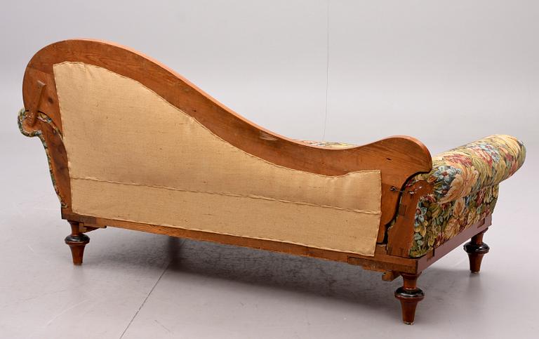 Valnöt med svärtade detaljer. Stoppad rygg, sits och karmar. L 170.