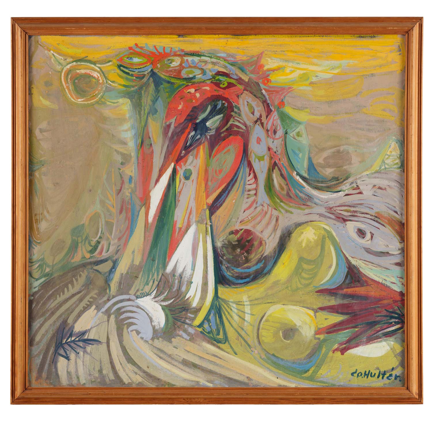 The auction’s collection includes thirteen works by artists Endre Nemes, Vilhelm Bjerke-Petersen, Lennart Rodhe, Lars-Gunnar Nordström, CO Hultén, and Rune Jansson. Together, they represent a broad spectrum of Swedish modernism and avant-gardism.