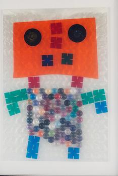 Signed Baj. Executed 1968. Collage in plastic 82 x 62 cm.