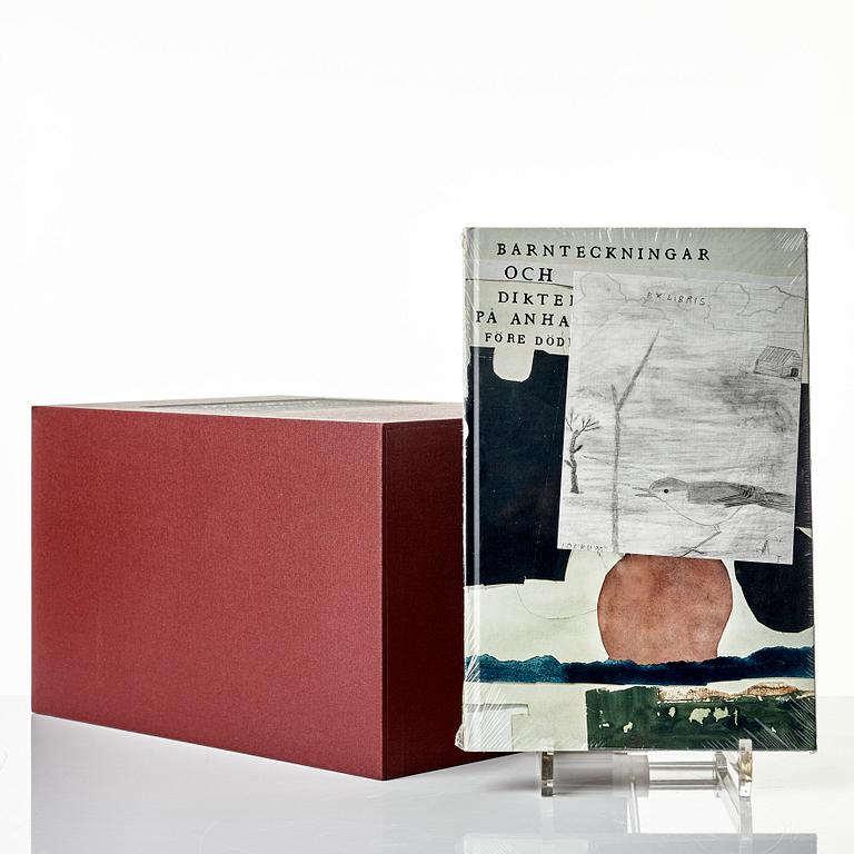 The book "Children's Drawings and Poems", acrylic show case box and a cloth-covered folding box with letterpress-label on the lid accompanies the lot.