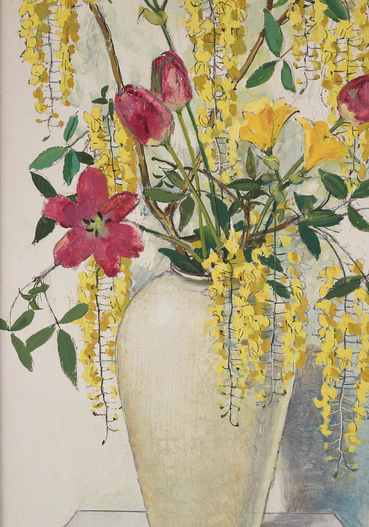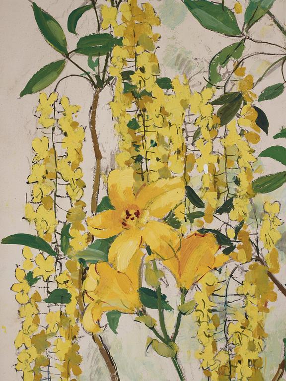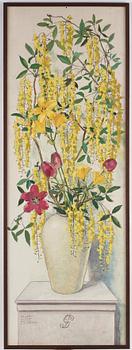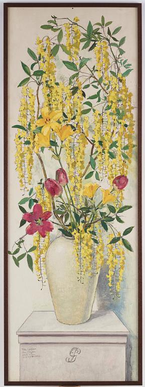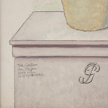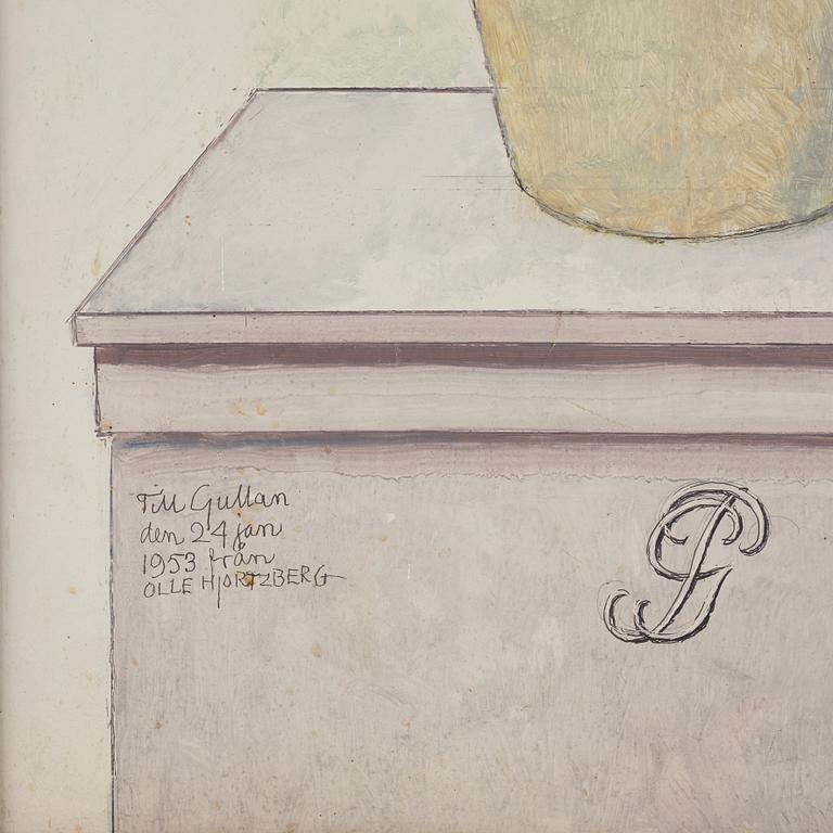 Signed Olle Hjortzberg, inscribed "Till Gullan" and dated 24 Juni 1953. Panel 162 x 58.5 cm.