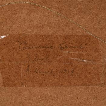Signed A. Kargel and dated 1954. Panel 40 x 52 cm.