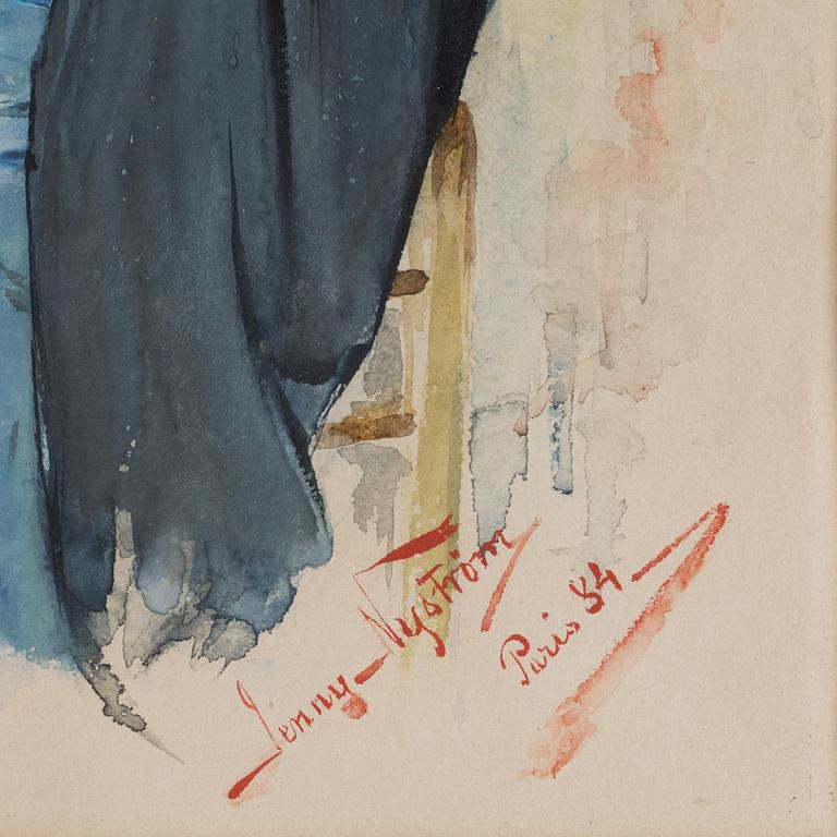 Signed Jenny Nyström and dated Paris 84. Gouache, image 34.5 x 24.5 cm.