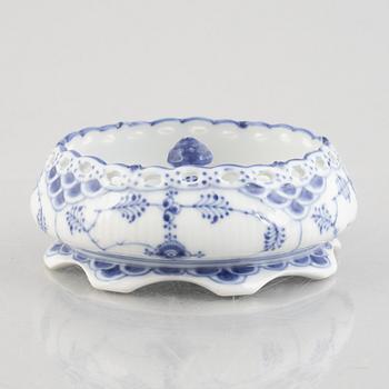 Bowl model 1001 with a crossbar and shell-shaped finial to the interior, pierced lace rim. Height 4, diameter 11 cm.