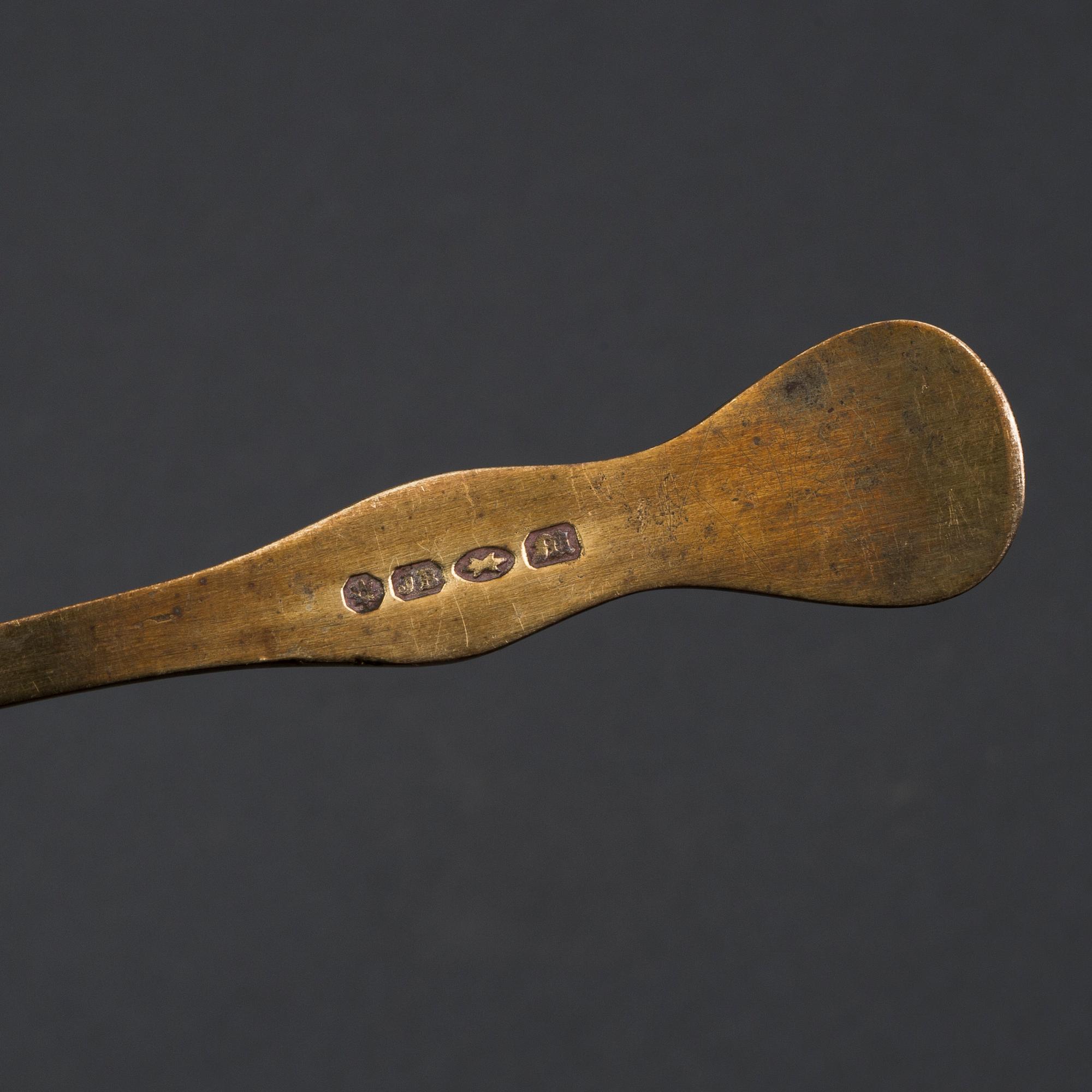 En slät med fiolskaft, tre med fällbart skaft och banddekor.