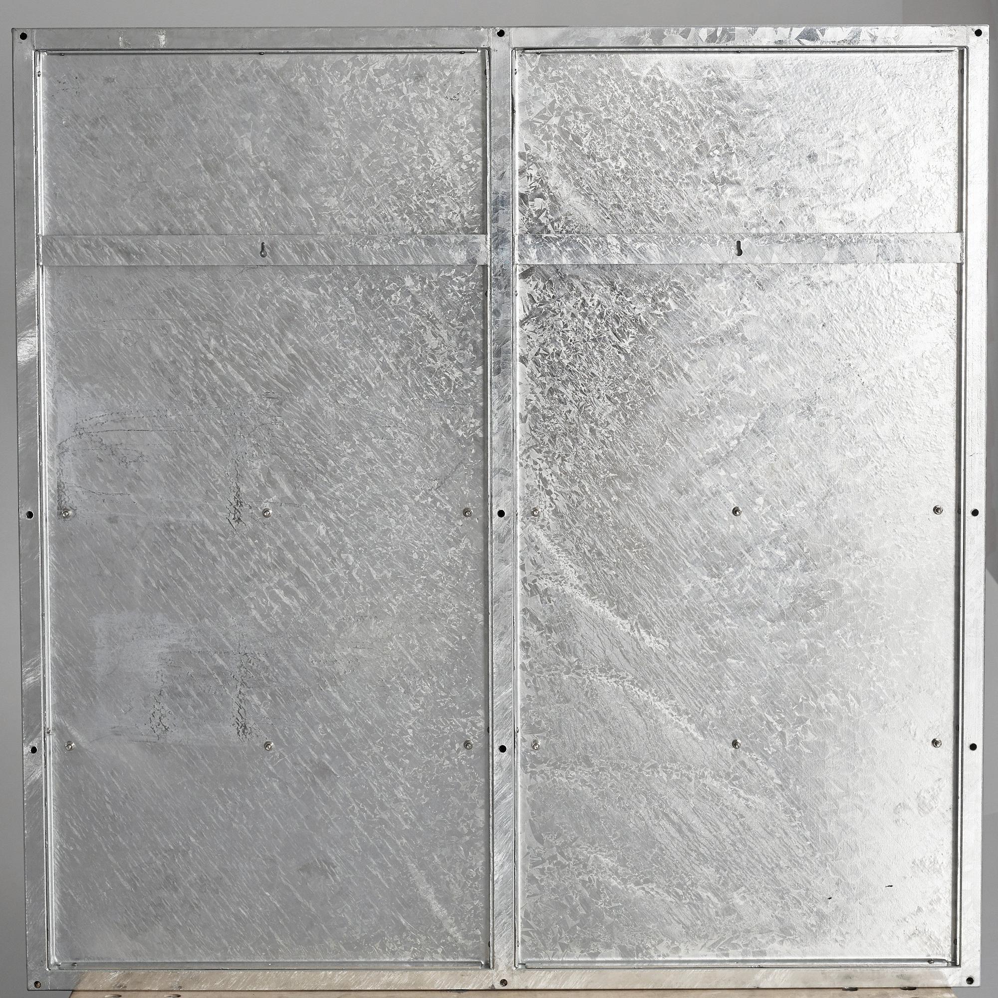 Galvanized steel, 130 x 130 x 33 cm. Wall consoles included.