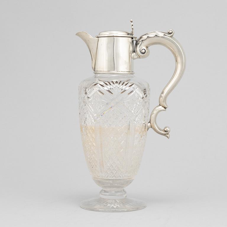A glass and silver decanter, mark of W Devenport, Birmingham 1902