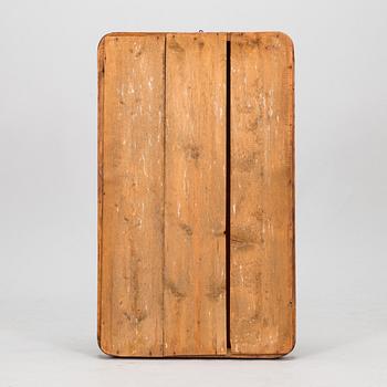 Petsattua puuta, pyöristetyt kulmat. Vanha peililasi. Korkeus 91 cm, leveys 55,5 cm.