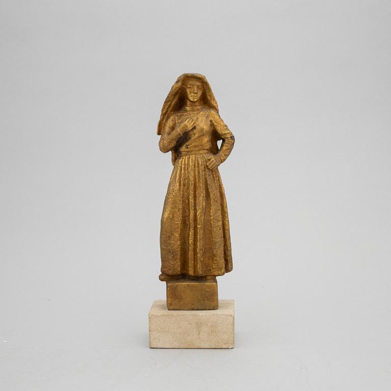 'Hösten.'Gilt bronze. Signed and numbered Eric Grate No. 10. Foundry mark H Bergman cire perdue. Executed around 1938. Height 27 cm. Mounted on rectangular cement plinth. Height 31 cm.