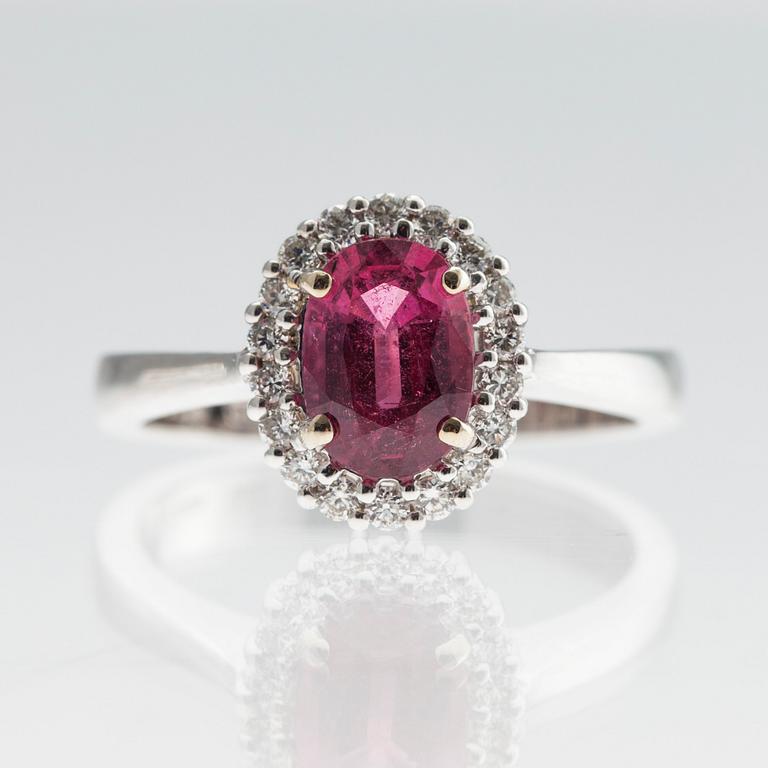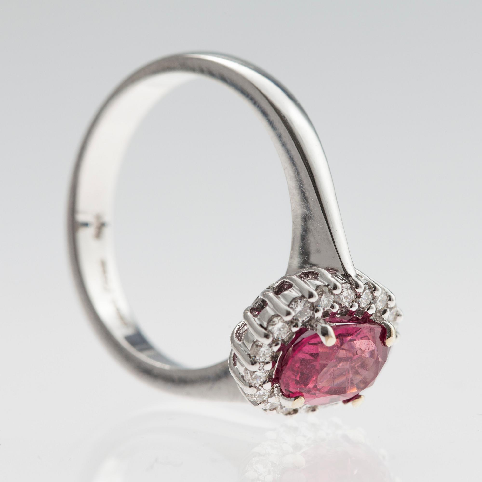 SORMUS, 14K valkokultaa, rosa safiiri 1.70 ct. Briljanttihiottuja timantteja 0.30 ct. Paino 5,4 g.