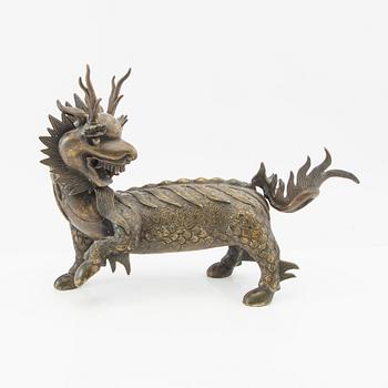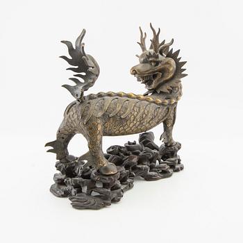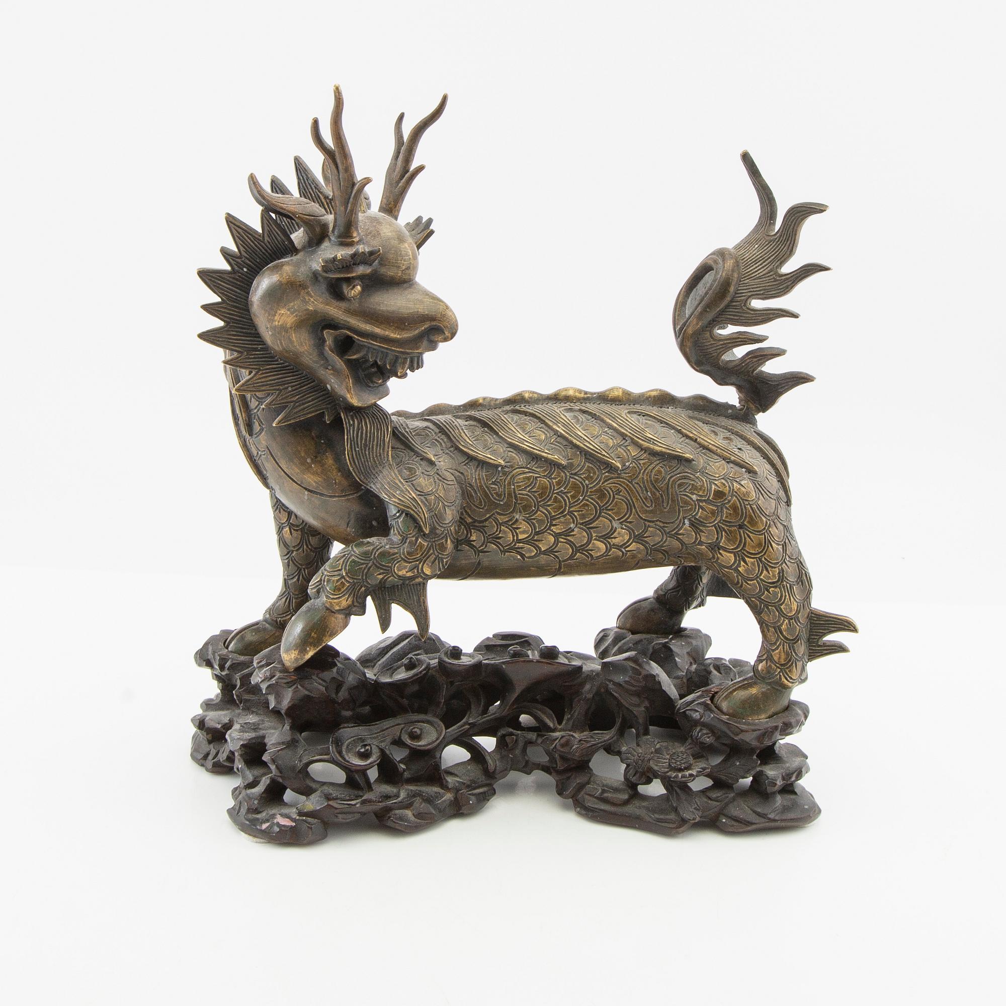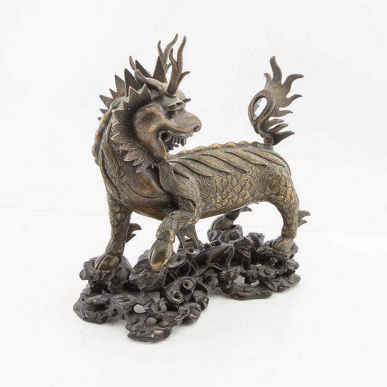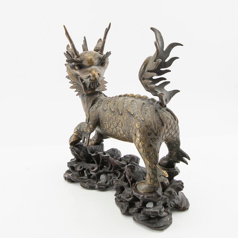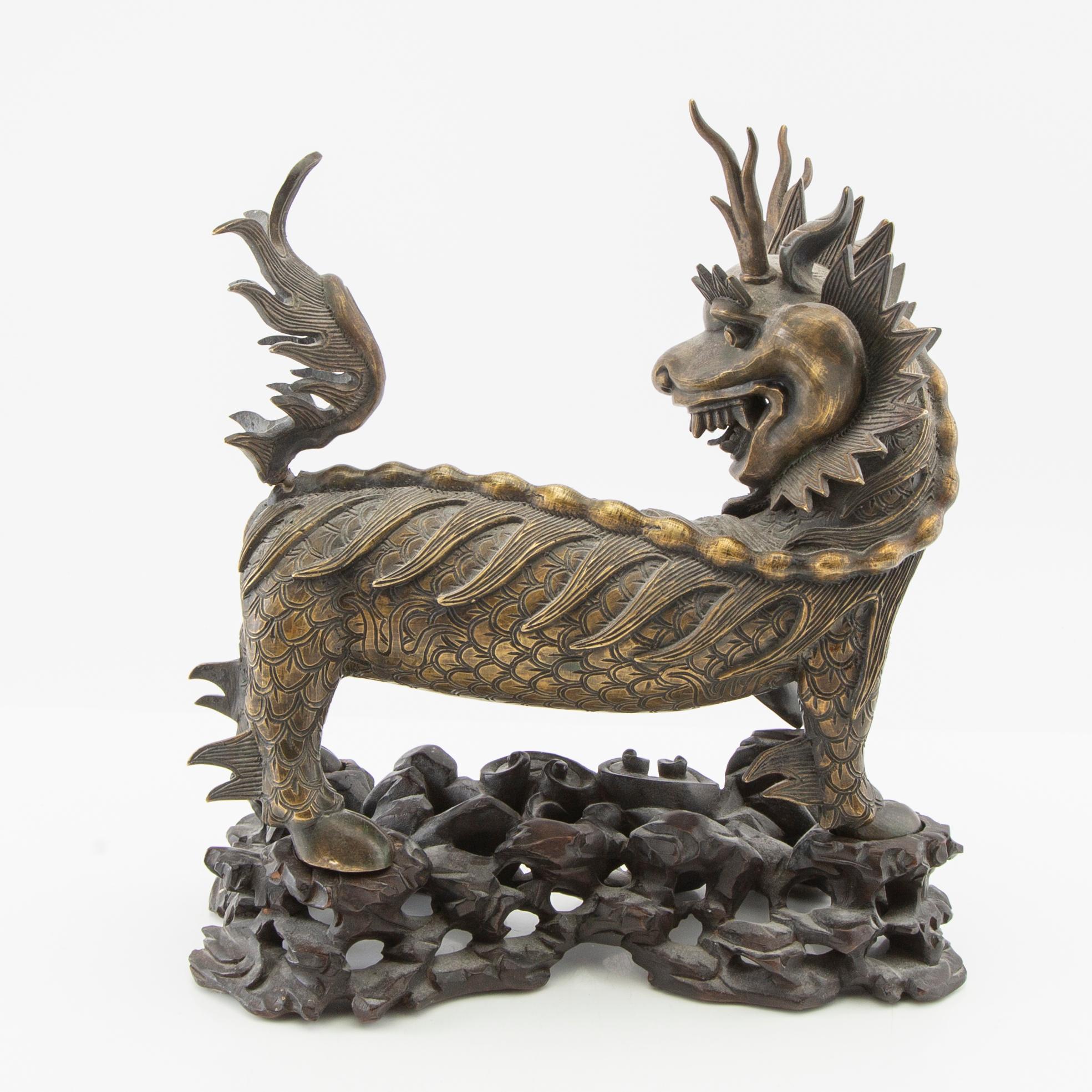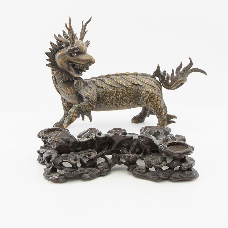 Stand of carved and sculpted wood, total height 29.5 cm, length approximately 28 cm