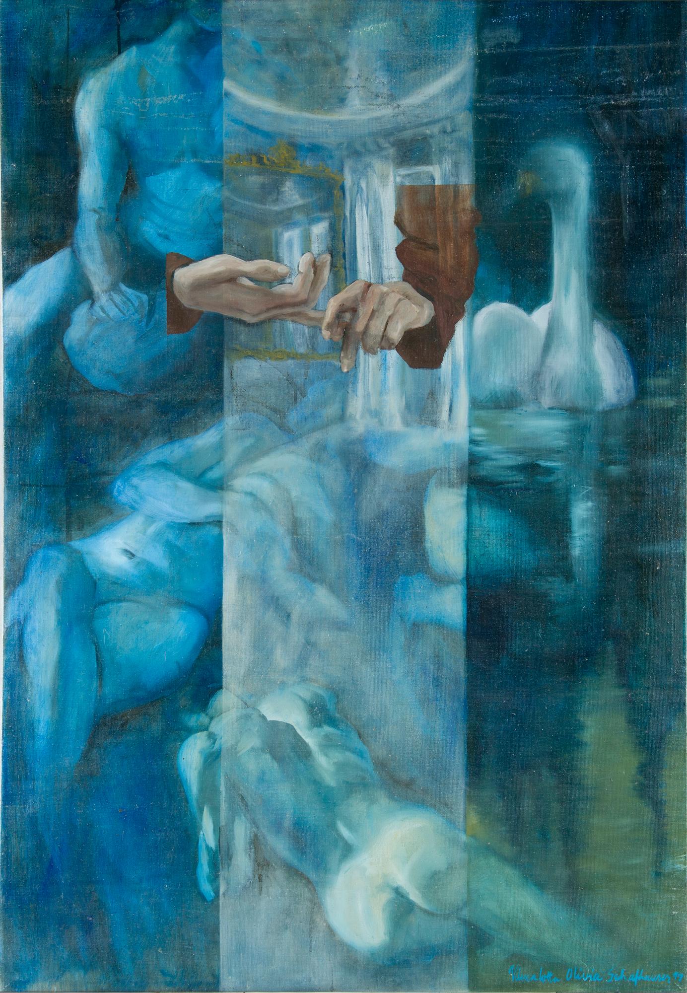 Signeerattu ja päivätty -99. Öljy kankaalle 144 x 100 cm.
