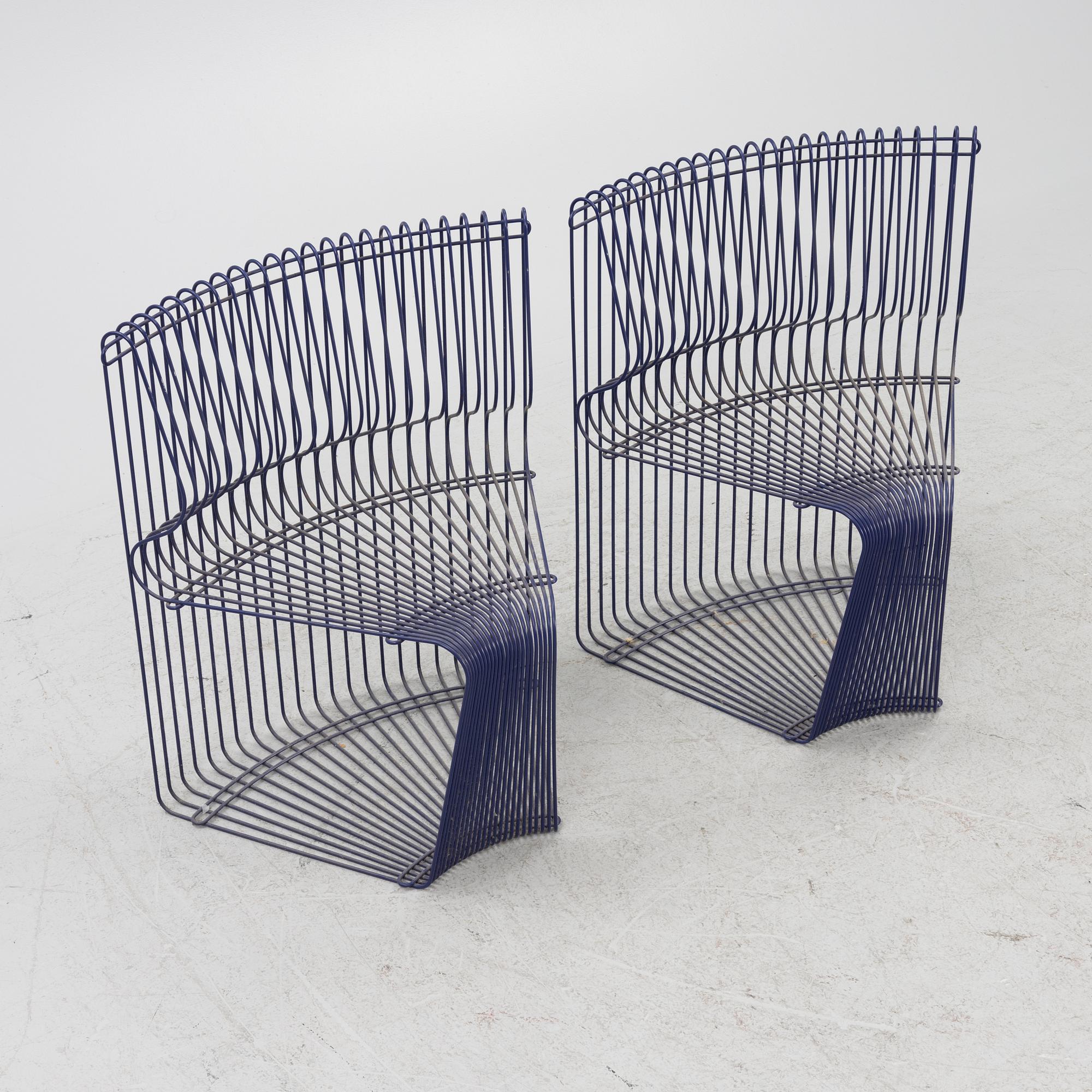 Dining table model "102 G" in chrome-plated steel later lacquered in purple, with a glass top, height 70.5 cm, diameter 120 cm, chairs model "102 S" in chrome-plated steel later lacquered in purple, height 76 cm, seat height 41 cm.