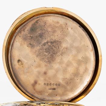 14K gold, lever escapement, unsigned dial, chatelaine in 18K gold, weight of the pocket watch approximately 96 grams, weight of the chatelaine approximately 13 grams, circa 1905.